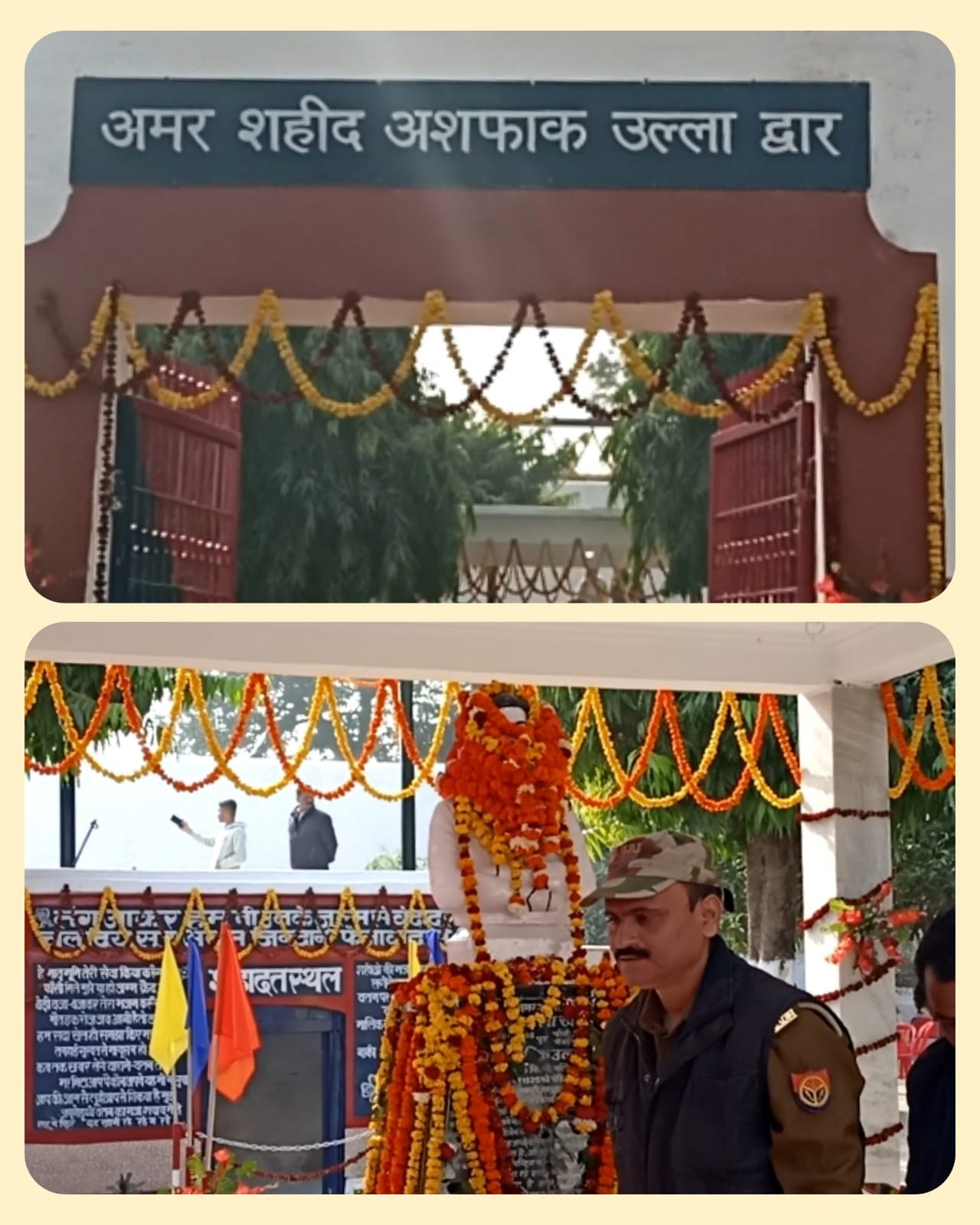 अयोध्या( संवाददाता) सुरेंद्र कुमार । मंडल कारागार में आज ही के दिन 19 दिसंबर 1927 को फैजाबाद के कारागार में अशफाक उल्ला खान को फांसी दी गई थी। इस मौके पर शहीद अशफाक उल्ला खां को श्रद्धांजलि दी गई।शहादत दिवस के मौके पर तीन विभूतियों को माटी रतन सम्मान भी दिया गया।अपूर्व जोशी,डॉ नुसरत मेंहदी व सैयद आबिद हुसैन को भी माटी रतन सम्मान दिया गया। शांति सिंह स्मृति छात्रवृत्ति, गीता देवी निबंध प्रतियोगिता डॉ शैलेश पांडेय स्मृति सामान्य ज्ञान प्रतियोगिता का भी हुआ आयोजन किया गया। अशफाक उल्ला खान मेमोरियल शहीद शोध संस्थान ने इस कार्यक्रम काआयोजित किया।संस्थान के प्रबंध निदेशक सूर्यकांत पांडे मंडल कारागार के अधीक्षक शशीकांत मिश्रा मौजूद रहे।मुख्य अतिथि के रूप में महात्मा गांधी नेशनल काउंसिल फॉर रूरल एजुकेशन हैदराबाद के वाइस चेयरमैन भरत पाठक,अयोध्या नगर निगम के महापौर ऋषिकेश उपाध्याय भी रहे मौजूद।