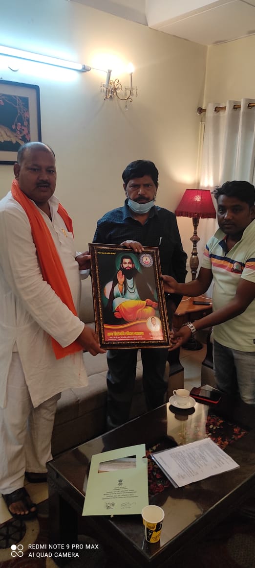 लखनऊ। बुधवार को लखनऊ के दौरे पर आए केन्द्रीय सामाजिक न्याय आधिकारिता राज्य मंत्री रामदास अठावले से वीवीआईपी गेस्ट हाउस मे संत शिरोमणि रविदास महासभा के राष्ट्रीय अध्यक्ष व अनुसूचित जाति वित्त विकास निगम के सदस्य रामह्रदय राम के नेतृत्व मे भेंट कर प्रतिनिधिमंडल ने अनुसूचित जाति/जनजाति के छात्रो की छात्रवृत्ति मे इजाफा करने की मांग की।