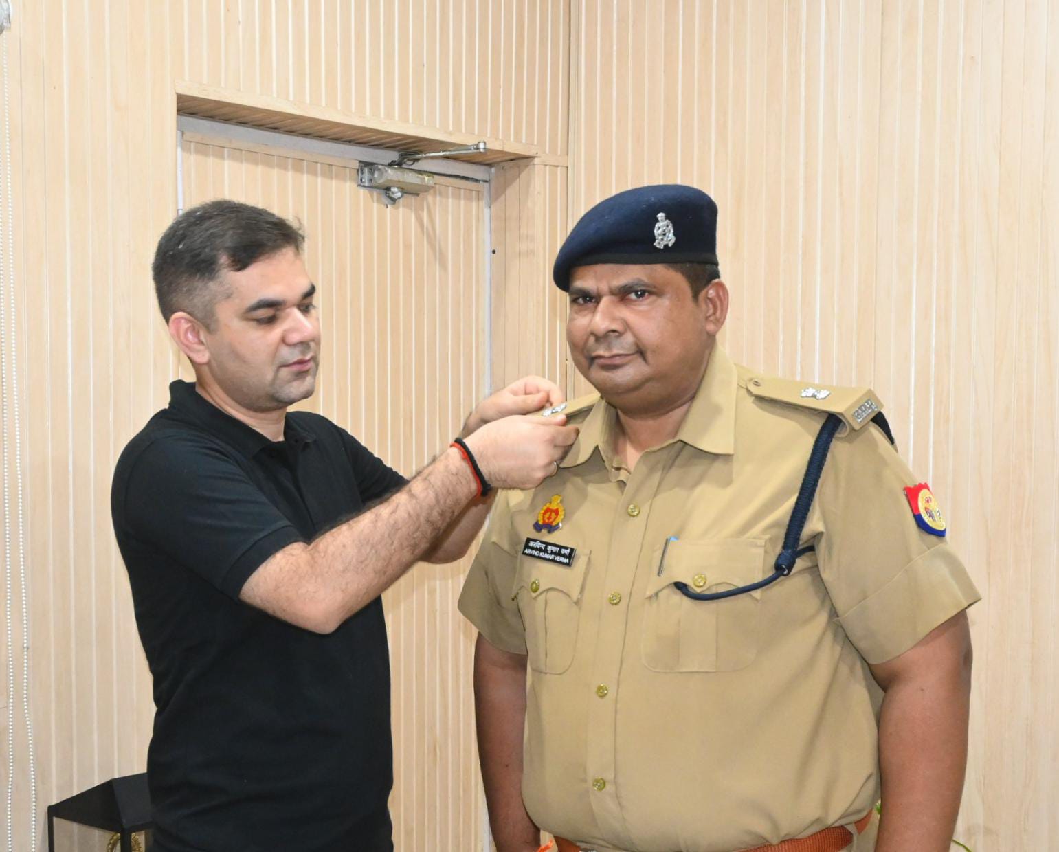 अपर पुलिस अधीक्षक पद पर पदोन्नति हुए अरविन्द कुमार वर्मा ( क्षेत्राधिकारी बदलापुर ) को पुलिस अधीक्षक द्वारा अशोक चिन्ह लगा कर की उनके उज्जवल भविष्य की कामना