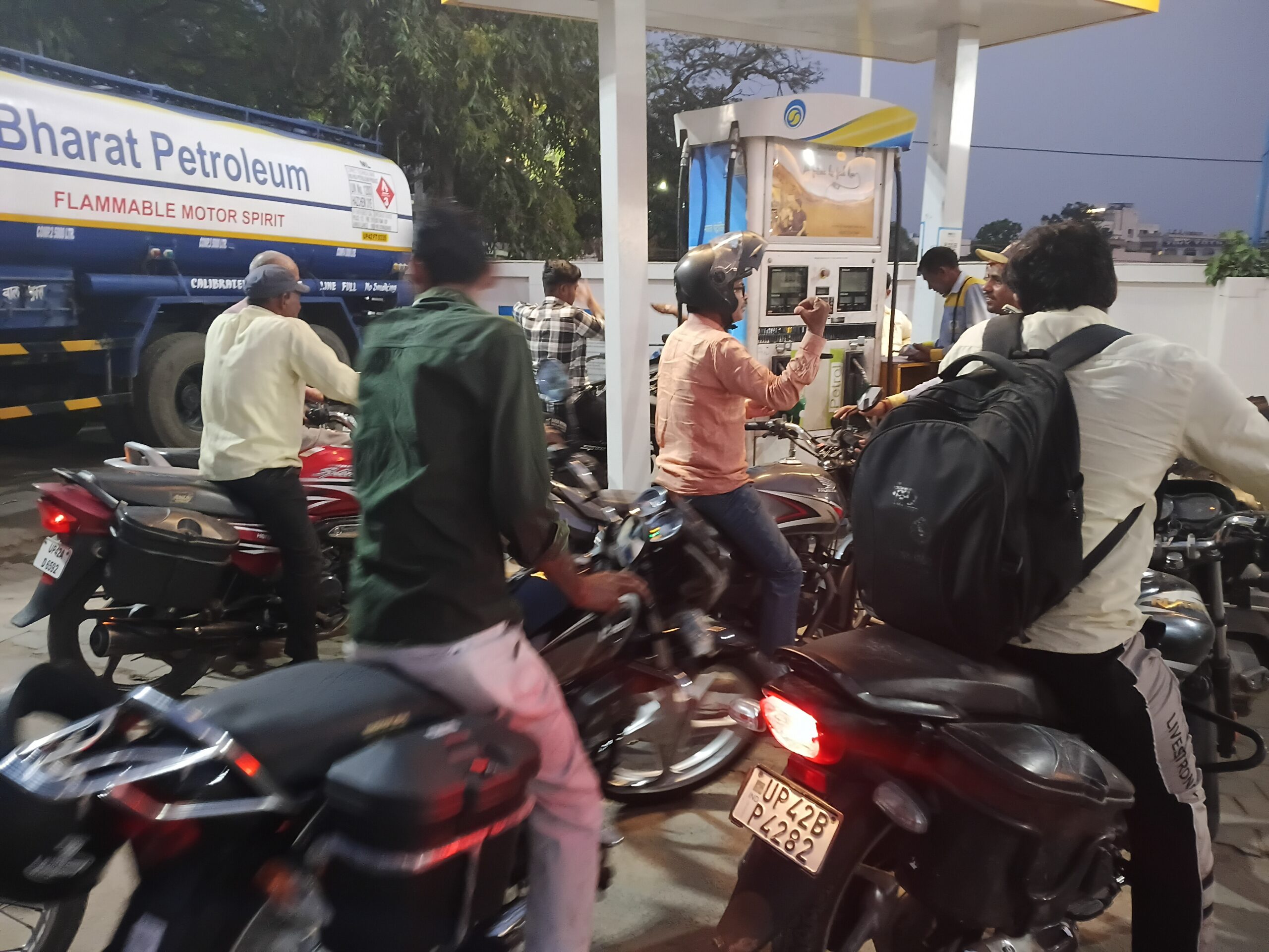 अयोध्या।अभी तक पिछले दिनों गैस सिलेंडर को लेकर मारामारी की स्थिति चल रही थी।जहां मंगलवार को सुबह सिलेंडर पाने के लिये शशि गैस एजेंसी के उपभोक्ताओं ने देवकाली बाईपास मार्ग को जाम किया था।वहीं मंगलवार की शाम को शहर के कई पेट्रोल टंकियों पर दो पहिया चार पहिया वाहनों की भीड़ देखी गई। क्योंकि इन वाहन चालकों के मन में उहाफोह की स्थिति थी कि कहीं ऐसा ना हो जाए कि आने वाले दिनों में पेट्रोल व डीजल का भी संकट का सामना करना पड़े।जिसको लेकर भारी संख्या में शहर के सिविल लाइन पर जहां एक पेट्रोल टंकी पर वाहन चालकों की भीड़ दिखी।वहीं किसी क्षेत्र में स्थित एक पेट्रोल पंप बंद मिला वहां पर पता करने पर पेट्रोल पंप के कर्मियों ने कहा कि डीजल व पेट्रोल खत्म हो गया है जिसके चलते वही समीप स्थित पेट्रोल टंकी पर दो पहिया हुआ चार पहिया वाहन चालकों की भीड़ दिखी