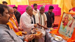 कार्यक्रम में शामिल विधायक विनय द्विवेदी पूर्व चेयरमैन राजीव रस्तोगी व अन्य लोग