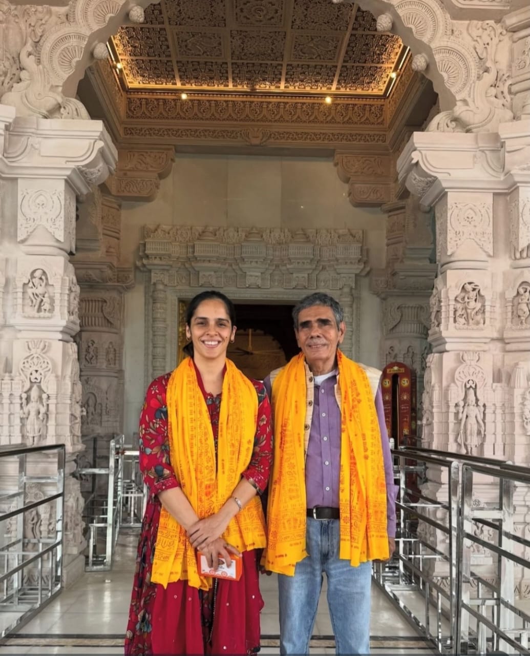 अयोध्या:भारत की बैडमिंटन स्टार साइना नेहवाल पहुँची अपने पिता के साथ राममंदिर