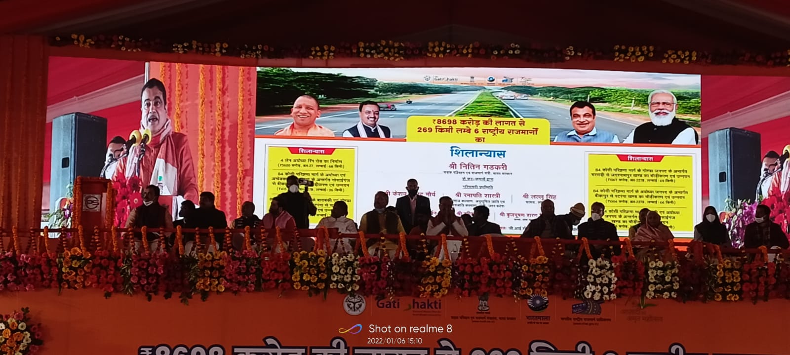 अयोध्या(संवाददाता) सुरेंद्र कुमार।केंद्रीय सड़क परिवहन एवं जहाजरानी मंत्री नितिन गडकरी आज अयोध्या पहुंचे । मौसम खराब होने के कारण तय समय से थोड़ी देरी में पहुंचे । हेलीपैड से सीधे जीआईसी मैदान में चल रही सभा शिरकत किया । केंद्रीय मंत्री नितिन गडकरी ने लगभग 5700 करोड़ रुपए की परियोजनाओं का शिलान्यास व लोकार्पण किया । केंद्रीय मंत्री नितिन गडकरी के साथ साथ उत्तर प्रदेश के उपमुख्यमंत्री केशव प्रसाद मौर्या भी कार्यक्रम में मौजूद थे । उन्होंने अयोध्या के लिए 84 कोसी परिक्रमा की 5 परियोजनाओं तथा 67 किलोमीटर रिंग रोड बाईपास का भी शिलान्यास किया । केंद्रीय मंत्री नितिन गडकरी ने कहा कि यह मेरा सौभाग्य है कि मुझे अयोध्या आकर 84 कोसी परिक्रमा मार्ग के शिलान्यास का अवसर प्राप्त हुआ । प्रभु राम आस्था व संस्कृति के प्रतीक है, अयोध्या में प्रभु श्री राम मंदिर का निर्माण हो रहा है उसका वर्णन करना बहुत कठिन है । हमने लगभग 31 सौ करोड़ खर्च करके 325 किलोमीटर का शिलान्यास किया है और 2023 समाप्त होते-होते इसका उद्घाटन करने भी अयोध्या आऊंगा । नितिन गडकरी ने सांसद लल्लू सिंह का भी धन्यवाद किया उन्होंने कहा कि सांसद लल्लू सिंह की मेहनत से ही यह कार्य संभव हो पाया है। जनता का धन्यवाद करते हुए कहा कि जैसे पिछली बार आपने हमारी कलम को ताकत दी थी वैसे इस बार भी पूर्ण बहुमत से भाजपा की सरकार बनाएं जिससे हम इसी कलम के हस्ताक्षर से अयोध्या की तस्वीर बदल सकें। सभा को संबोधित करने के बाद केंद्रीय मंत्री नितिन गडकरी अयोध्या पहुंचकर हनुमानगढ़ी पर मत्था टेका और राम जन्मभूमि परिसर में जाकर श्रीराम के आशीर्वाद भी लिए ।