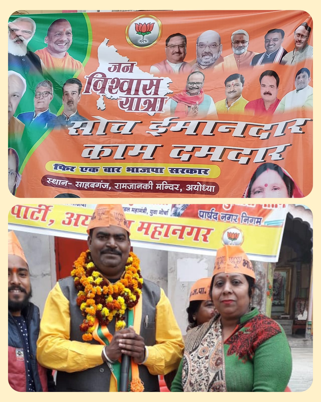 अयोध्या(संवाददाता) सुरेंद्र कुमार। अयोध्या में भाजपा के अंतिम जन विश्वास यात्रा में उमड़ा जनसैलाब दिखाई पड़ा। अनुसूचित जनजाति मोर्चा के महानगर अध्यक्ष संतोष कुमार गौड़ और उनके पार्टी कार्यकर्ता में काफी हौसला का हर्ष उल्लास दिखने को मिला। जन विश्वास यात्रा नगर भ्रमण करते हुए साहबगंज के राम जानकी मंदिर के पास पहुंची जहां पर लोगों ने सांसद लल्लू सिंह, महापौर ऋषिकेश उपाध्याय, विधायक वेद प्रकाश गुप्ता अन्य कार्यकर्ता पार्टी के सदस्यों का भव्य स्वागत महानगर अध्यक्ष और उनके कार्यकर्ताओं ने किया।महानगर अध्यक्ष संतोष कुमार गौड़ ने बताया भारतीय जनता पार्टी की यह यात्रा जनता के विश्वास की यात्रा का हैं, यूपी की जनता का पूरा विश्वास है कि एक बार फिर यूपी में योगी सरकार बनेगी इस यात्रा का प्रथम उद्देश है कि यूपी में किसी भी वर्ग संप्रदाय और जनता का विश्वास इतना योगी सरकार पर हो चुका है कि वह योगी सरकार को बनाने के लिए अपना महत्वपूर्ण भूमिका निभाएगी आज योगी सरकार ने गरीबों एवं असहायों को पक्का मकान रसोई गैस और करोना काल में राशन लोगों को दिया है जो आज भी घर घर में लोगों तक राशन पहुंच रहा है यूपी की जनता जानती है कि योगी सरकार के अलावा कोई भी सरकार इस तरह से शासन नहीं ला सकती कि जो आज माफिया भी उनके चंगुल में है और उन से डरती है जो जनता के लिए हितकर साबित हो रही है अपराध करने वालों के लिए अब कोई जगह जेल के अलावा नहीं है। इस जन विश्वास यात्रा का भव्य स्वागत करने में अनुसूचित जनजाति मोर्चा के महानगर अध्यक्ष संतोष कुमार गौड़ ,महानगर मंत्री भीम गौड़,मंगल प्रसाद गौड़,देवकाली मंडल अध्यक्ष प्रमोद कुमार गौड़, देवकाली मंडल महामंत्री विश्वास कश्यप, करिएप्पा मंडल अध्यक्ष विकास कुमार गौड़, अयोध्या मंडल अध्यक्ष सुनील कुमार गौड़ एवं समस्त पदाधिकारी नेतागण मौजूद थे।