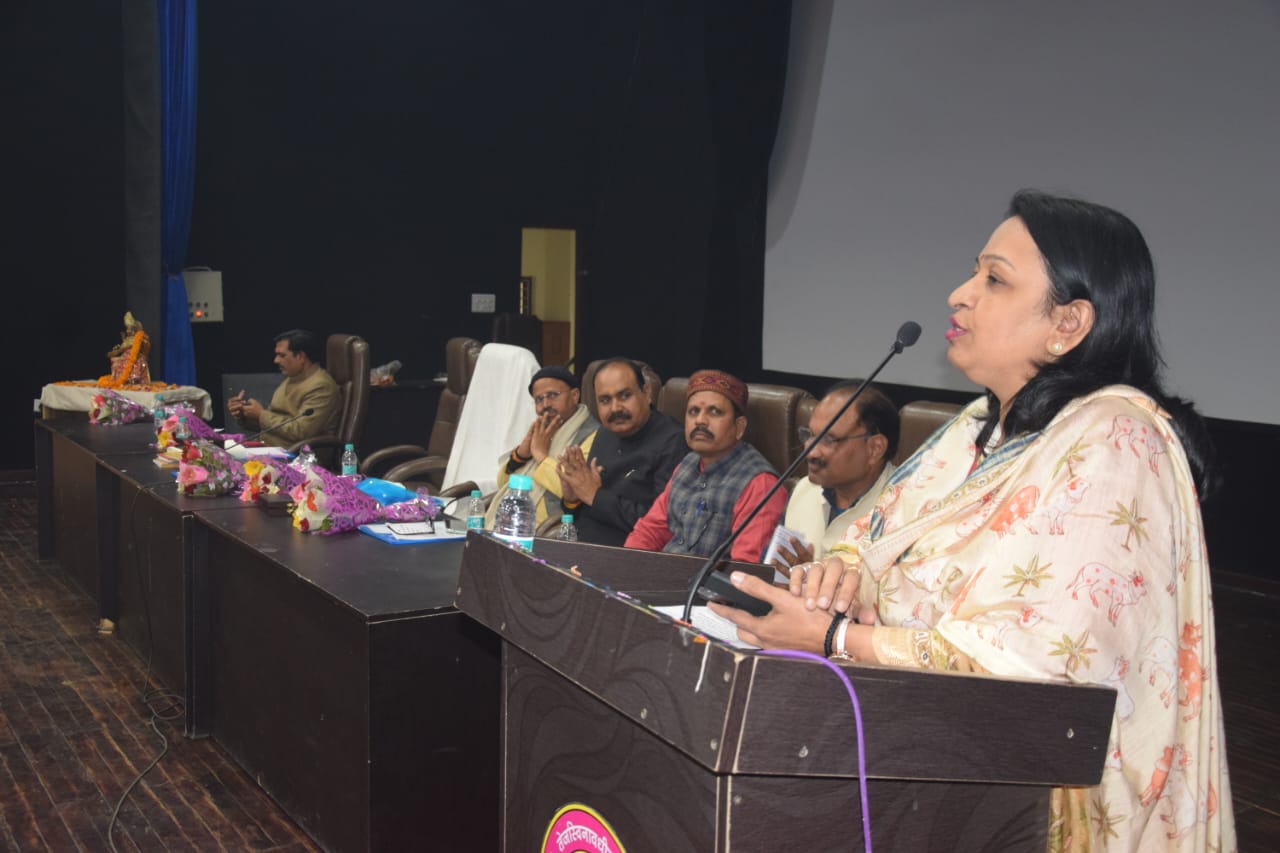 संगोष्ठी की अध्यक्षता कर रही कुलपति प्रो. निर्मला मौर्य ने कहा कि अनुवाद में कोई न कोई ताकत तो है हीं, जो हमें मातृभाषा की ओर आकर्षित करती है। हिंदी बोलने से हमारा अपमान नहीं होता। इस संकोच को मन से निकालने की जरूरत है, तभी हमारी भाषा का विकास होगा। उन्होंने अपनी पुस्तक गर्भ संस्कार भेंट करते हुए कहा कि इसे छात्राओं को जरूर पढ़ना चाहिए इसमें पूरे गर्भ संस्कार के बारे में महत्वपूर्ण चीज दी गई है।