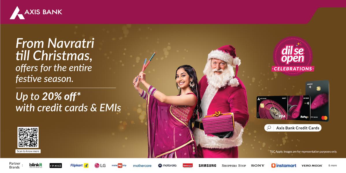 सके कि हर फेस्टिव पल न सिर्फ फायदेमंद हो, बल्कि सच में यादगार भी हो।” ‘दिल से ओपन सेलीब्रेशन्स 2025’ के साथ, एक्सिस बैंक खुद को सिर्फ एक वित्तीय संस्थान के रूप में नहीं, बल्कि भारत की समृद्ध सांस्कृतिक और भावनात्मक यात्रा में एक पार्टनर के रूप में भी स्थापित करता है, जो पूरे देश में लाखों घरों में फेस्टिव माहौल लेकर आता है। रचनात्मकता, समावेशिता और पहुँच का मिश्रण पेश करके, बैंक का मकसद इंडस्ट्री में फेस्टिव मार्केटिंग के लिए एक नया मानदंड स्थापित करना और सही मायने में दिल से ओपन होने के ब्रांड वादे को दिखाना है। कुछ ऑफर नीचे दिए गए हैं;