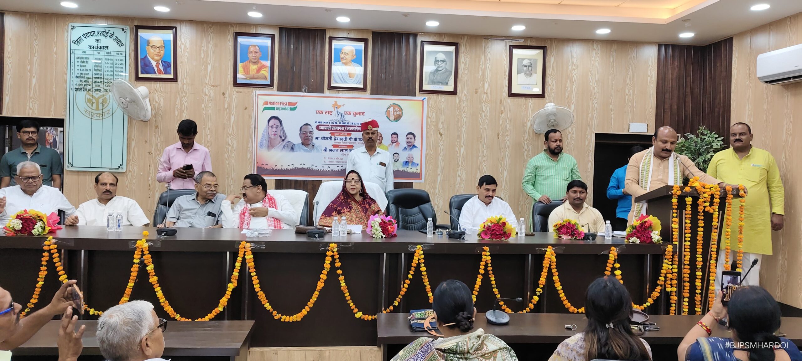 सोमवार को अपराह्न 04 बजे जिला पंचायत भवन के सभागार में वन नेशन वन इलेक्शन सम्मेलन को संबोधित करते हुए मुख्य अतिथि जिला पंचायत अध्यक्ष प्रेमवती ने कहा कि वन नेशन वन इलेक्शन विकसित भारत की नींव है। पीएम मोदी उस नींव को डालने में सबका साथ चाहते है। भाजपा सरकार में देश जिस गति के साथ आर्थिक प्रगति की ओर अग्रसर है, यदि उसमें एक देश एक चुनाव की परिपाटी और पड़ जाए तो भारत की आर्थिक प्रगति की रफ्तार १०० गुनी हो जाएगी।