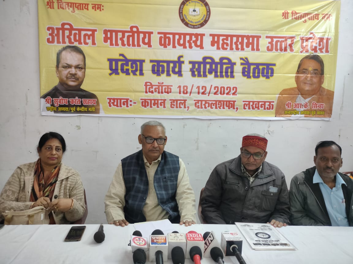 बैठक को सम्बोधित करते हुए प्रदेश अध्यक्ष डॉ इन्द्रसेन श्रीवास्तव ने कहा कि आज से नहीं आदिकाल से हमारा समाज देश और दुनिया को दिशा देने का कार्य किया है।धर्म और अध्यात्म के क्षेत्र में स्वामी विवेकानंद, स्वतंत्रता आन्दोलन में नेताजी सुभाष चन्द्र बोस,भारत के प्रथम राष्ट्रपति संविधान सभा के अध्यक्ष राजेंद्र प्रसाद, प्रधानमंत्री लाल बहादुर शास्त्री जैसे अनेकों महान कायस्थ विभूतियों ने अपना जीवन देश के लिए समर्पित कर दिया। दुर्भाग्य है कि आज हम देश में हासिये पर आ गए हैं। इसके लिए हम सबको सोचकर काम करना पड़ेगा कि हम अपनी आने वाली पीढ़ी को कैसे सुरक्षित रखें। बैठक को सम्बोधित करते हुए राष्ट्रीय उपाध्यक्ष डॉ रमेश श्रीवास्तव ने कहा कि संख्या बल के आधार पर लखनऊ व अन्य नगर निगम, नगरपालिका, नगरपंचायत में महापौर, चेयरमैन व पार्षद, सभासद हेतु प्रत्याशियों का चुनाव में खुलकर समर्थन करें।आज सामाजिक भागेदारी हिस्सेदारी तय करने के लिए कायस्थ समाज को एकजुट होकर काम करना पड़ेगा। अखिल भारतीय कायस्थ महासभा का इसी के निमित्त निर्माण हुआ कि हम सब अपने इस संगठन को गांव स्तर व नगरों महानगरों में वार्ड स्तर पर गठन कर सदस्य संख्या में बढ़ोतरी करें और हम अपनी सामाजिक, राजनीतिक आर्थिक हिस्सेदारी तय करें।आज अखिल भारतीय कायस्थ महासभा उप्र की इस साधारण सभा में सभी जनपदों का प्रतिनिधित्व यह दर्शाता है कि हम अपनी आने वाली पीढ़ी को सुरक्षित और समृद्धिशाली बनाने को लेकर संघर्ष करने में सक्षम है।आज की इस बैठक में आप सबसे यही आशा और अपेक्षा है कि संगठन का विस्तार कर समाज के दबे कुचले शोषित पीड़ित भाइयों का सहयोग कर उन्हें मुख्यधारा में शामिल करें। बैठक का संचालन प्रदेश महामंत्री श्याम चन्द्र श्रीवास्तव ने किया।इस दौरान राष्ट्रीय उपाध्यक्ष डॉ रमेश श्रीवास्तव प्रदेश कोषाध्यक्ष राकेश श्रीवास्तव , प्रदेश कार्यकारी अध्यक्ष पश्चिमी संभाग वेद प्रकाश सक्सेना, प्रदेश कार्यकारी अध्यक्ष मध्यसंभाग सन्तोष निगम, प्रदेश संगठन मंत्री आमोद श्रीवास्तव , प्रदेश उपाध्यक्ष मध्यसंभाग प्रभारी संजीव कुमार सक्सेना, जिला अध्यक्ष सुशील कुमार श्रीवास्तव, प्रदेश सचिव श्रीकांत श्रीवास्तव, मनीष श्रीवास्तव, शिव व्रत लाल श्रीवास्तव, राजीव रतन खरे, ज्ञान प्रकाश श्रीवास्तव, गिरीश श्रीवास्तव अश्वनी कुमार कमठान, आलोक प्रधान , किरण श्रीवास्तव सुलतानपुर, अनूप श्रीवास्तव सुलतानपुर, ओम प्रकाश श्रीवास्तव, श्याम जी सक्सेना, किरण सक्सेना, संगीता श्रीवास्तव, महिला प्रकोष्ठ अध्यक्ष पूर्वांचल संभाग अंजना श्रीवास्तव, शिव भूषण लाल श्रीवास्तव प्रदेश सचिव, जतिन सिन्हा सुलतानपुर, सुशील कुमार श्रीवास्तव जिला अध्यक्ष लखनऊ, 