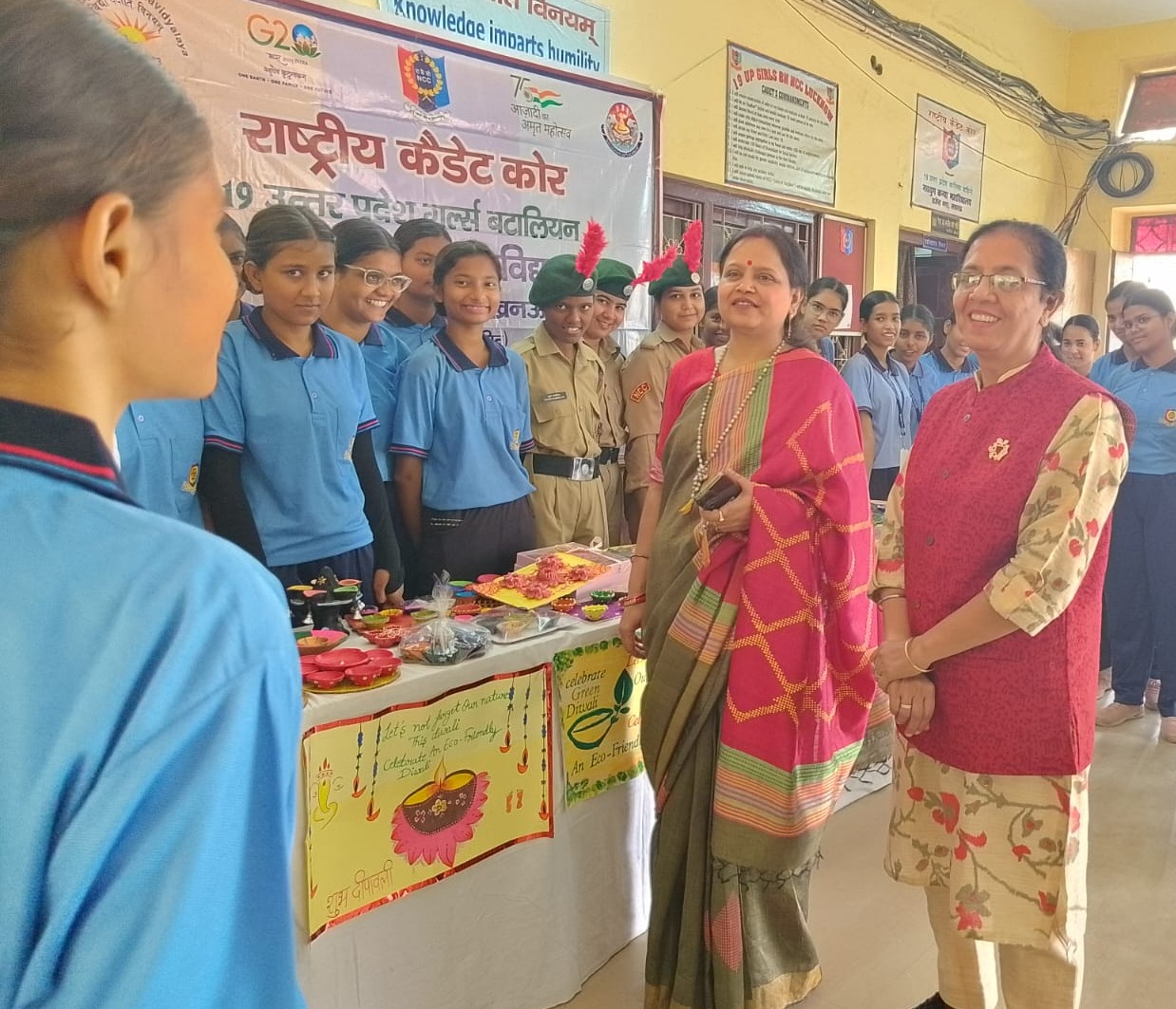 इस अभियान में कैडेट अंजली राय, दिव्यांशी, गौरवी, खुशी त्रिपाठी, ललिता, नैंसी, प्रियंका यादव, शिवानी पाल, श्रेया गुप्ता,सुहानी झा,स्वीटी, युक्ता, कल्याणी, खुशी , रोशनी थापा, रूपा, सुप्रिया, श्रुति, वर्षा यादव,अनामिका, बुशरा, जानवी,महिमा,प्रियांशी, रुचि, शीलू, शिवांशी, श्रेया शुक्ला, श्रेया यादव, सिद्धी, माया, प्रिय, रेशमा, निष्ठा, माही ज्ञानवी, दिव्या समेत बड़ी संख्या में कैडेट्स ने मिट्टी के दीयों को खूबसूरती से सजाया जिसे उन्होंने छोटे दुकानदारों से खरीदा ताकि वह और उनका परिवार भी दीपावली की खुशियां मना सकें I