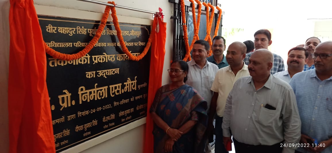जौनपुर। वीर बहादुर सिंह पूर्वांचल विश्वविद्यालय के संकाय भवन स्थित टेक्निकल सेल के अत्याधुनिक कार्यालय का उद्घाटन शनिवार को कुलपति प्रोफेसर निर्मला एस. मौर्य ने किया।