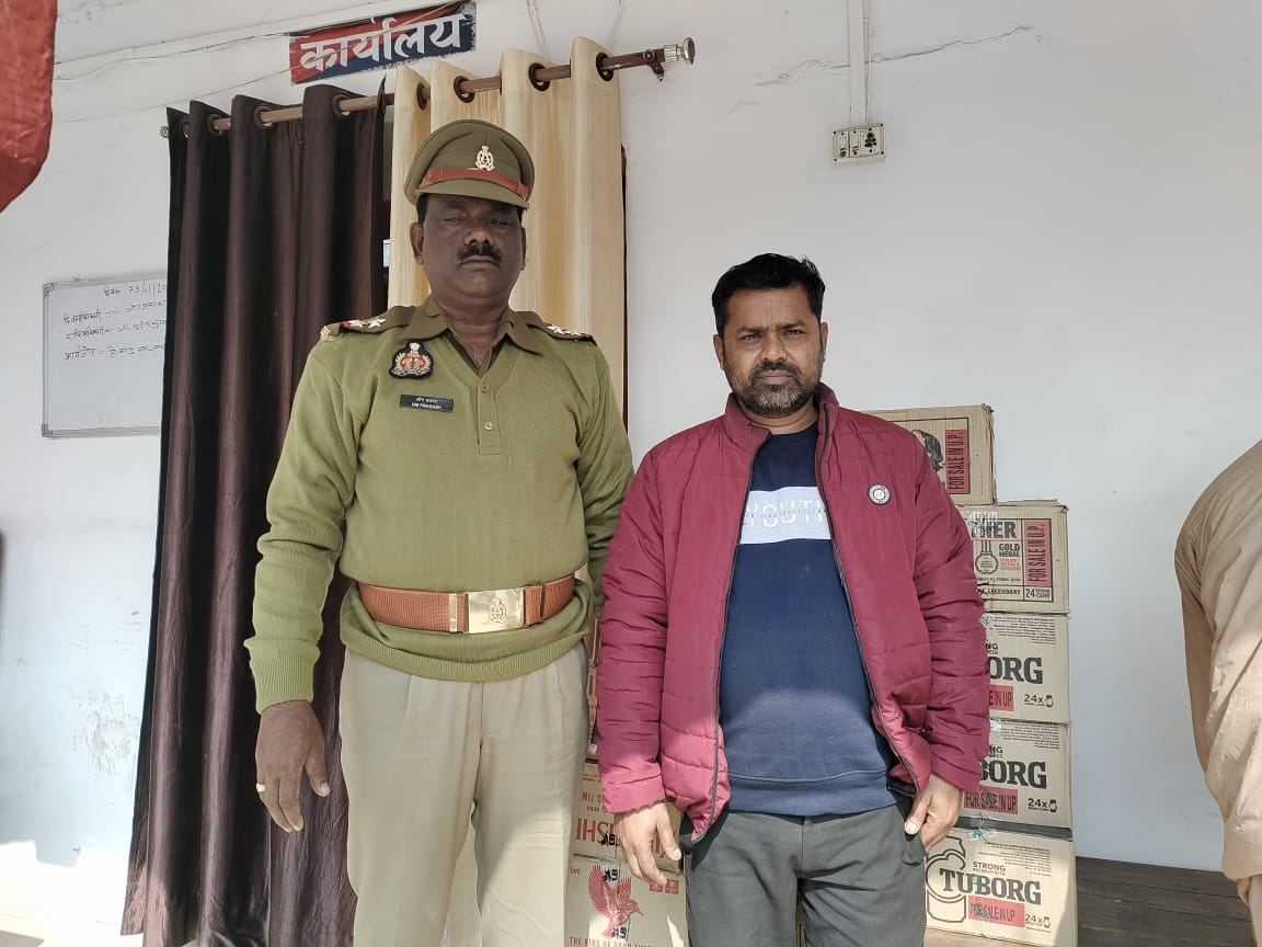 अयोध्या।(डाक्टर अजय तिवारी जिला संवाददाता)  कोतवाली नगर पुलिस व स्वाट टीम व आबकारी निरीक्षक के कर्मियों ने संयुक्त रुप से शराब विक्रेता को गिरफ्तार किया।पुलिस ने गिरफ्तार किये गये विक्रेता के पास से 18 पेटी अंग्रेजी शराब बरामद किया।प्रभारी निरीक्षक कोतवाली नगर शमशेर बहादुर सिंह के नेतृत्व में गठित पुलिस टीम व निरीक्षक मोहम्मद अरसद स्वाट टीम प्रभारी,आशीष चन्द्र त्रिपाठी चौकी प्रभारी चौक कोतवाली नगर, अयोध्या‌ व आबकारी निरीक्षक हरीन्द्र कृष्णा जनपद अयोध्या ने संयुक्त रुप से कार्यवाही करते हुए मुखबिर की सूचना के आधार पर ककरही बाजार के पास रविवार को आरोपी विनोद कुमार मौर्य पुत्र अमरनाथ मौर्य निवासी ककरही बाजार चूना भट्ठी थाना कोतवाली नगर जनपद अयोध्या को गिरफ्तार कर उसके पास से 18 पेटी अंग्रेजी शराब व बियर बरामद किया। जबकि एक अन्य आरोपी राहुल गुप्ता दुकान मालिक रामप्रकाश चौक बियर की दुकान