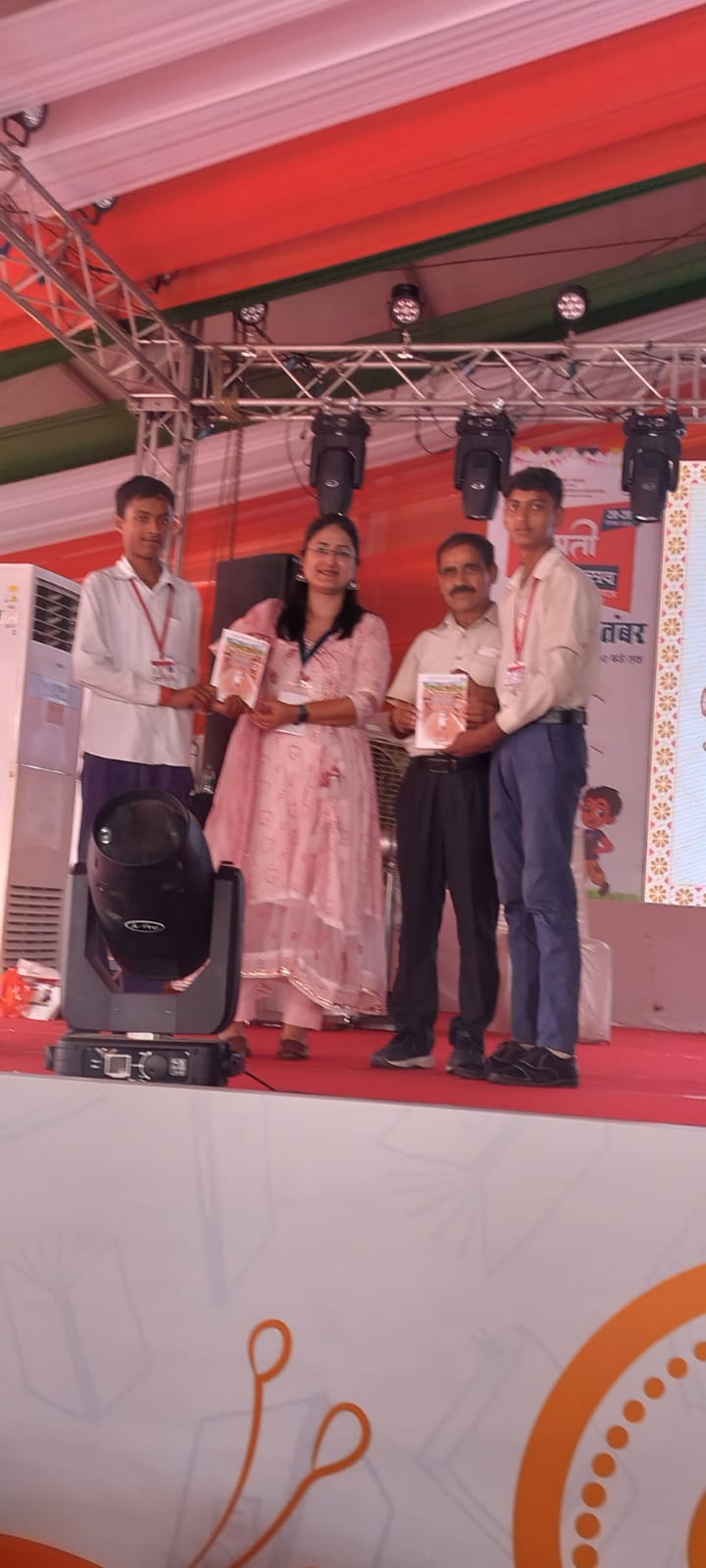 लखनऊ:पुस्तको को पढ़ देख कर बच्चों का पुल्कित हुआ मन आज गोमती पुस्तक महोत्सव में बच्चों ने क्विज़ प्रतियोगिता में भाग लिया अभयसिंह और कृष्णा यादव कक्षा 9 ने सही उत्तर दिए दोनों बच्चों को मंच डायरेक्टर मेडम ने पुस्तक पुरस्कार के रूप में एग्जाम वारियर्स दी और गाइड शिक्षक होने के नाते मुझे भी मंच पर सम्मानित किया। इस भ्रमण और क्विज़ प्रतियोगिता में 12 बच्चों ने प्रतिभाग किया। सभी बच्चों ने अपने-अपने उत्कृष्ट प्रदर्शन करने पर एक पुस्तक और प्रमाण पत्र जीते। बच्चों को खूब आनंद आया। बच्चों को नाश्ता भी दिया गया। बच्चों के चहरे की खुशी देख मैं भी आनंदित हुआ। बच्चों ने संकल्प भी लिया कि अब हम मोबाइल से नहीं पुस्तको को पढ़ेंगे। हमने कहा कि सबसे अच्छा मित्र हमारी पुस्तक होती है। बच्चों ने इसे स्वीकार किया।मेरा पुस्तक मेला में बच्चों को ले जाना भविष्य में सार्थक प्रयास सिद्ध होगा।🙏🙏
