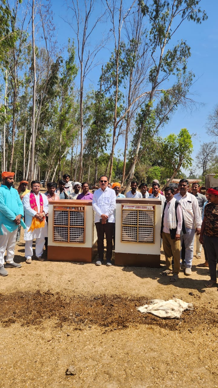 बक्शी का तालाब तहसील के गढ़ा गांव स्थित गौशाला में गायों को गर्मी से बचाने के लिए बड़े कूलरों की व्यवस्था की गई