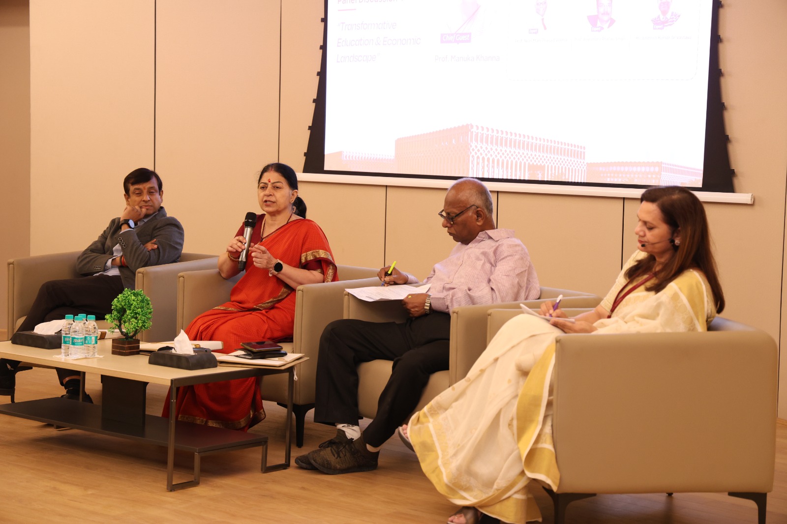 चर्चा के प्रथम सत्र में शिक्षा में बदलाव और इकॉनॉमी का फ्यूचर विषय पर विस्तृत चर्चा की गई। इस सत्र का संचालन प्रो. अलका सिंह, फैकल्टी ऑफ बिज़नेस एंड कॉमर्स, चंडीगढ़ यूनिवर्सिटी, यूपी द्वारा किया गया। इस दौरान भारत की नई शिक्षा नीति, तकनीक आधारित शिक्षा प्रणाली, इंडस्ट्री और शिक्षा के आपसी संबंध तथा शिक्षा के ज़रिए आर्थिक विकास की संभावनाओं पर अपने विचार मंथन किया गया। सत्र के दौरान यह विचार प्रमुखता से उभरा कि यदि शिक्षा प्रणाली में इनोवेशन और इंडस्ट्री ओरिएंटेड विज़न को अपनाया जाए, तो भारत की अर्थव्यवस्था को सशक्त और समावेशी बनाया जा सकता है।