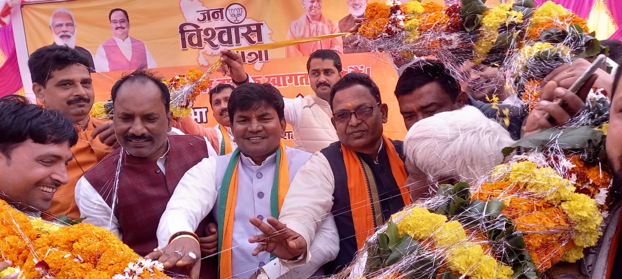 ।भाजपा की जन विश्वास यात्रा का खजनी विधानसभा क्षेत्र में जगह-जगह प्रमुख चौराहों पर पर जोरदार भव्य स्वागत किया गया।यात्रा की नेतृत्व कर रहे केंद्रीय वित्त राज्य मंत्री पंकज चौधरी के साथ रथ वाहन पर जिला प्रभारी अजय सिंह गौतम,राज्य मंत्री जयप्रकाश निषाद,जिलाध्यक्ष युधिष्ठिर सिंह,क्षेत्रीय विधायक संत प्रसाद,