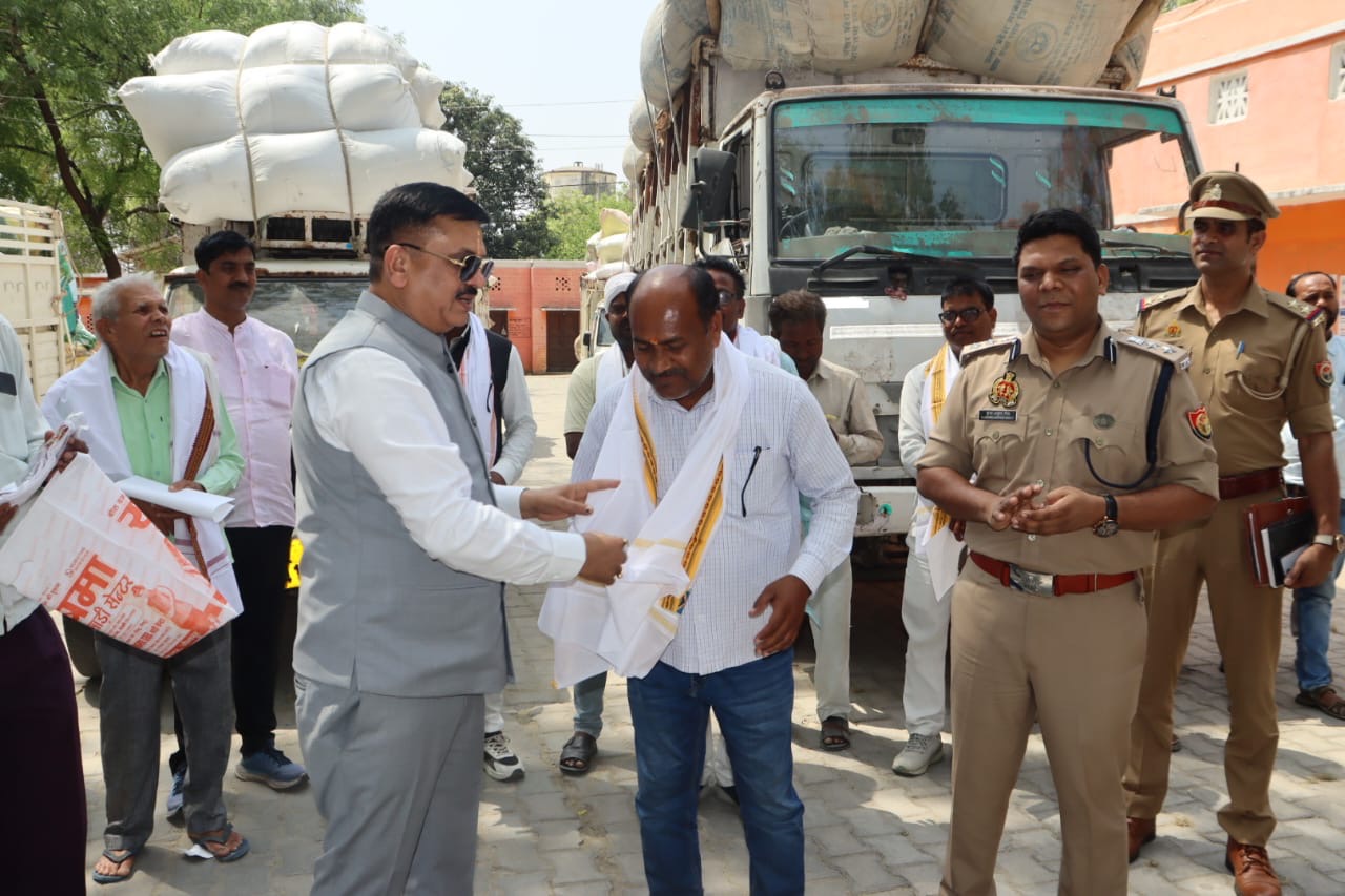 इस दौरान जिलाधिकारी एवं वरिष्ठ पुलिस अधीक्षक द्वारा भूसा गाड़ियों को हरी झंडी दिखाकर गौशालाओं के लिए रवाना किया गया।