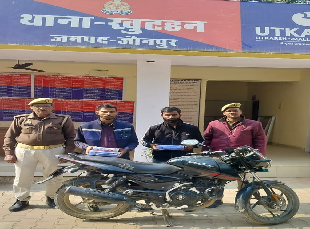 जौनपुर: पुलिस अधीक्षक के द्वारा अपराध की रोकथाम एवं अपराधियो की गिरफ्तारी हेतु चलाये जा रहे विशेष अभियान के क्रम में अपर पुलिस अधीक्षक नगर के दिशा-निर्देशन एवं क्षेत्राधिकारी शाहगंज के कुशल पर्यवेक्षण तथा थानाध्यक्ष खुटहन के कुशल नेतृत्व में थाना खुटहन पुलिस टीम द्वारा थाना स्थानीय पर पंजीकृत मु0अ0स0 – 35/2025 धारा 304(2)/317(2) बी.एन.एस. से सम्बन्धित 02 अभियुक्तों क्रमशः 1.अभिषेक यादव पुत्र हरीनाथ यादव निवासी मई थाना बक्शा जनपद जौनपुर 2.बबलू उर्फ शशिकान्त यादव पुत्र सुरेन्द्र यादव निवासी कोईरीडीह (तिवारी का पूरा) थाना सरायख्वाजा जनपद जौनपुर को मय 09 स्मार्ट मोबाईल,16 एयरटेल सिमकार्ड व 01 छिनैती में प्रयुक्त पल्सर मोटरसाईकिल बरामद करते हुए अभियुक्तगण को रामनगर तिराहा थाना खुटहन जनपद जौनपुर के पास से दिनांक 29.01.2025 को समय करीब 11.10 बजे रात्रि में गिरफ्तार करते हुए आवश्यक विधिक कार्यवाही करते हुए सम्बन्धित मा0 न्यायालय भेजा जा रहा है।