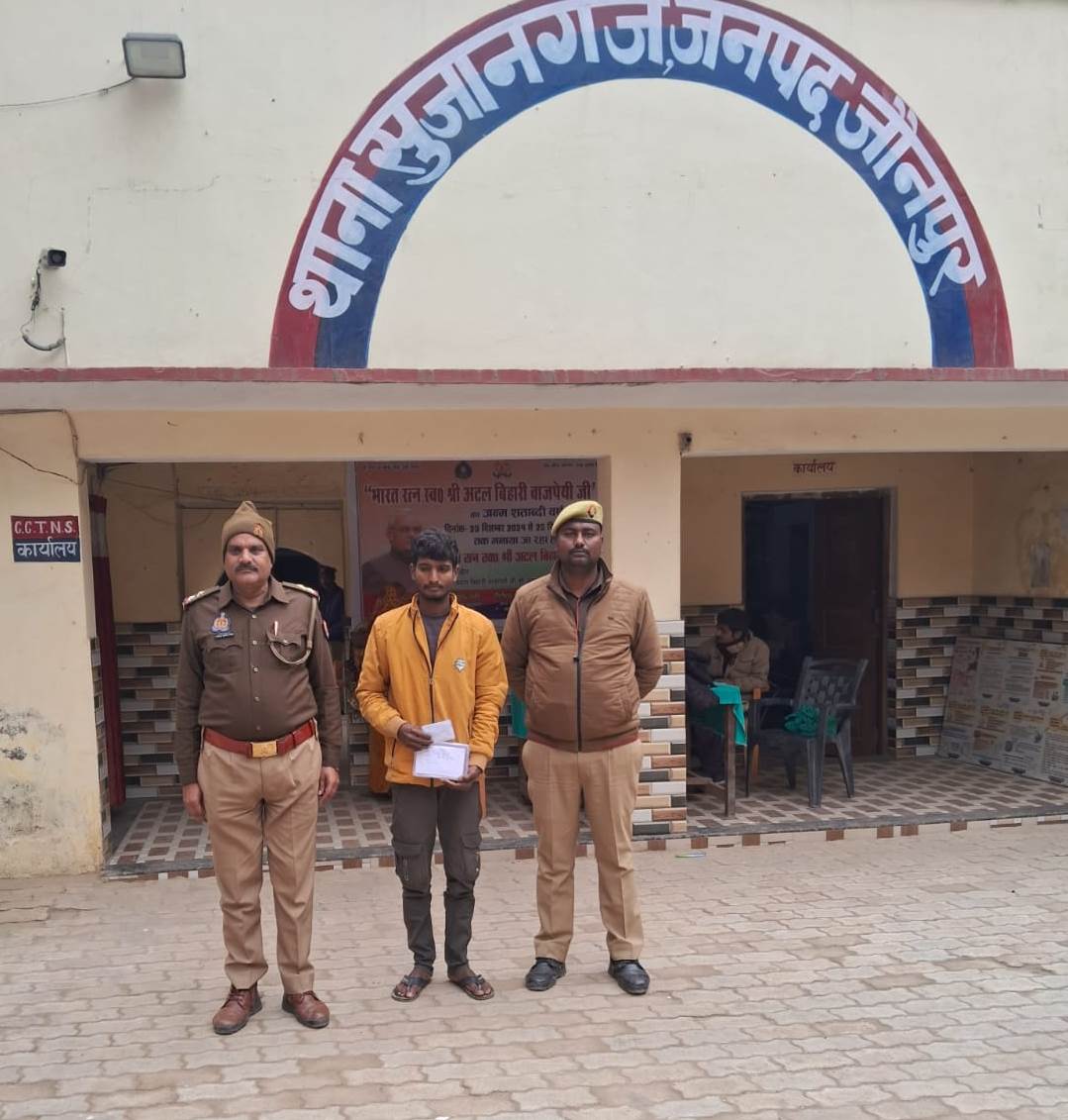 डा0 कौस्तुभ, श्रीमान पुलिस अधीक्षक जौनपुर के निर्देशन मे अपराध की रोकथाम एवं अपराधियों की गिरफ्तारी हेतु चलाये जा रहे विशेष अभियान के क्रम मे अपर पुलिस अधीक्षक(ग्रामीण) के दिशा निर्देशन व श्रीमान क्षेत्राधिकारी बदलापुर जौनपुर के पर्यवेक्षण में थानाध्यक्ष राजीव मल्ल थाना सुजानगंज जनपद जौनपुर व उ0नि0 मनोज कुमार सिंह मय हमराही कर्मचारीगण द्वारा चोरी करने के सम्बन्ध में थाना सुजानगंज में पंजीकृत मु0अ0सं0 418/2024 धारा 305 बीएनएस थाना सुजानगंज जौनपुर से सम्बन्धित अभियुक्त प्रदीप यादव पुत्र गुलाब यादव ग्राम सरायभोगी सुजानगंज जनपद जौनपुर को दिनांक 30.12.2024 को बदलापुर तिराहा के पास से हिरासत पुलिस में लिया गया । बाद कार्यवाही उपरोक्त गिरफ्तारशुदा अभियुक्त को नियमानुसार आवश्यक विधिक कार्यवाही करते हुए मा0 न्यायालय के समक्ष प्रस्तुत किया जा रहा है ।
