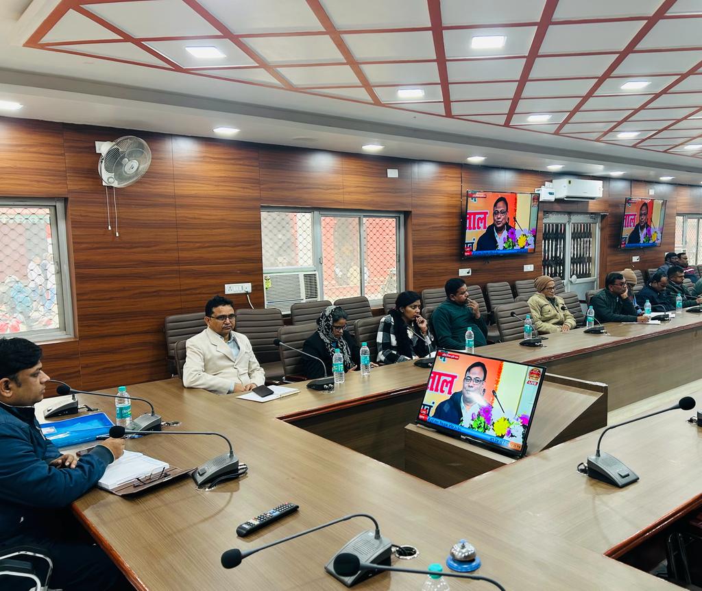 जौनपुर 04 जनवरी 2024 (सू0वि0)- कलेक्ट्रेट सभागार में गुरुवार को ऐग्रीस्टैक परियोजना अंतर्गत जनपद स्तरीय प्रशिक्षण कार्यक्रम का आयोजन किया गया, जिसमें कृषि निदेशालय से लाइव स्ट्रिमिंग द्वारा ई-खसरा पड़ताल के सम्बंध में कार्मिकों को प्रशिक्षित किया गया।