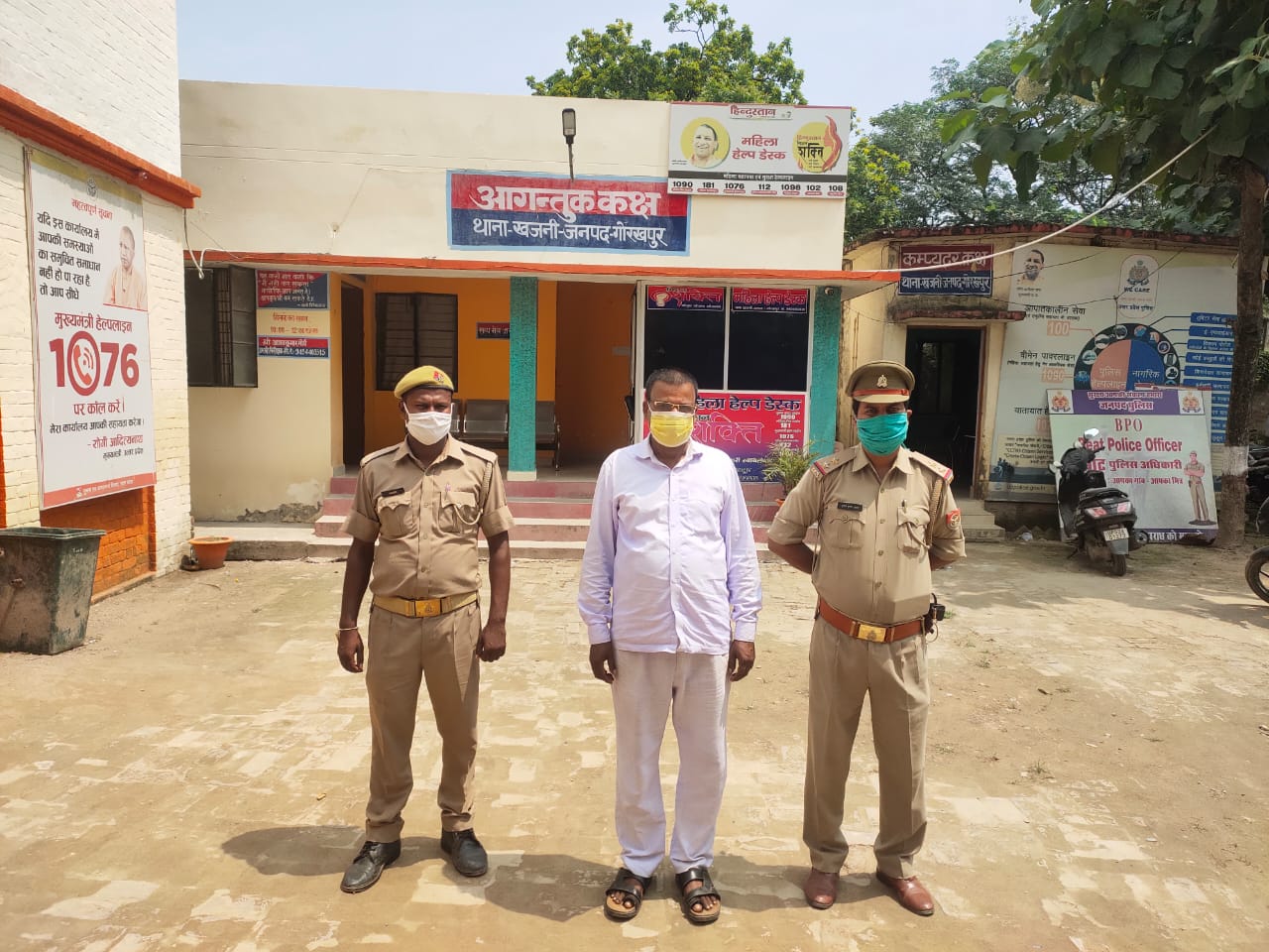 प्रभारी निरीक्षक अजय कुमार मौर्य खजनी के नेतृत्व में दिनांक 08.09.2021 को उ0नि0 संजय कुमार सिह मय हमराह का0 कमल शुक्ला, व का0 सुरेश सिह यादव के खजनी तिराहे पर चेकिंग कर रहा था, कि जरिये मुखबिर खास सूचना मिली कि दिनांक 06.09.2021 को तहसील परिसर घटना मे नामजद अभियुक्तगण कही जाने हेतु कटघर तिराहे के पास वाहन का इन्तजार कर रहे है, इस सूचना पर विश्वाश कर मै उ0नि0 मय हमराह मुखविर कटघऱ तिराहे से पहले पहुचे थे कि मुखबिर खास द्वारा इशारा कर हट वढ गया हम पुलिस वाले मौके पर पहुच कर खडे दोनो व्यक्तियो का नाम पता पुछा गया तो एक ने अपना नाम .तारापती यादव पुत्र स्व0 छबिलाल निवासी कटवर थाना बांसगांव जनपद गोरखपुर तथा दुसरे ने अपना नाम बृजेश पुत्र सिताराम निवासी ग्राम कटवर थाना बांसगांव जनपद गोरखपुर बताया जो मु0अ0सं0 243/2021 धारा 147,323,504,307,506 भादवि मे वाछित है, जिनको कारण गिरफ्तारी बताते हुए समय करीब 05.15 बजे पुलिस हिरासत मे लिया गया ।