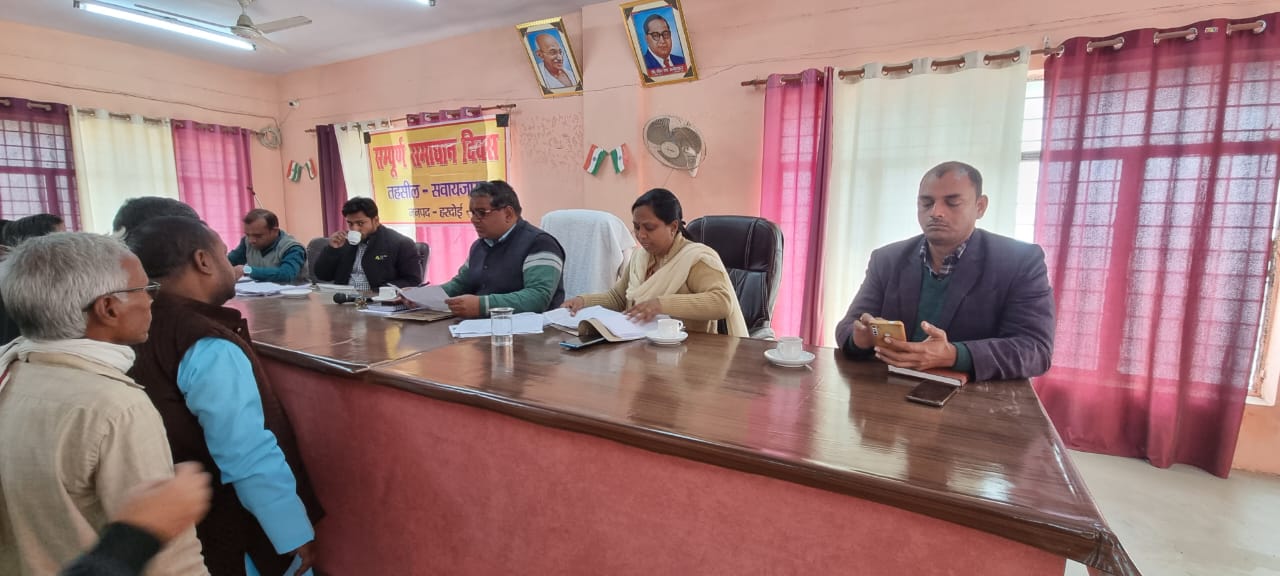 पाली-हरदोई शनिवार को उत्तर प्रदेश शासन के निर्देशों के क्रम में तहसील सवायजपुर परिसर में एसडीएम राकेश सिंह की अध्यक्षता में सम्पूर्ण समाधान दिवस का आयोजन किया गया। इस दौरान तहसीलदार अरुणिमा श्रीवास्तव की मौजूदगी में एस डीएम ने जन शिकायतों को सुना। उपजिलाधिकारी राकेश सिंह व तहसीलदार अरुणिमा श्रीवास्तव ने आये हुये फरियादियों की शिकायतों को एक-एक करके सुना और उनका निराकरण किया। सम्पूर्ण समाधान दिवस में कुल 37 शिकायतें मिली जिनमें से 2 शिकायतों का मौके पर ही निस्तारण कर दिया गया। शेष सभी शिकायतों का जल्द निस्तारण करने के निर्देश संबंधित को दिए, कहा कि समस्याओं तथा शिकायतों को गुणवत्तापूर्ण निस्तारण निर्धारित समय सीमा में कराया जाये। इस कार्य में किसी भी स्तर पर लापरवाही न बरती जाये।एसडीएम राकेश सिंह ने कहा कि सरकारी जमीनों पर कब्जा करने वालों के विरुद्ध कड़ी कार्यवाही की जाएगी। समाधान दिवस में उन्होंने कहा कि सरकारी जमीनों पर कब्जा जमाये लोगों को चिन्हित कर उन पर कठोर कार्यवाही कर जमीन कब्जा मुक्त कराई जाएगी। इस अवसर पर राजस्व,पुलिस व अन्य संबंधित विभागों के कर्मी मौजूद रहे।