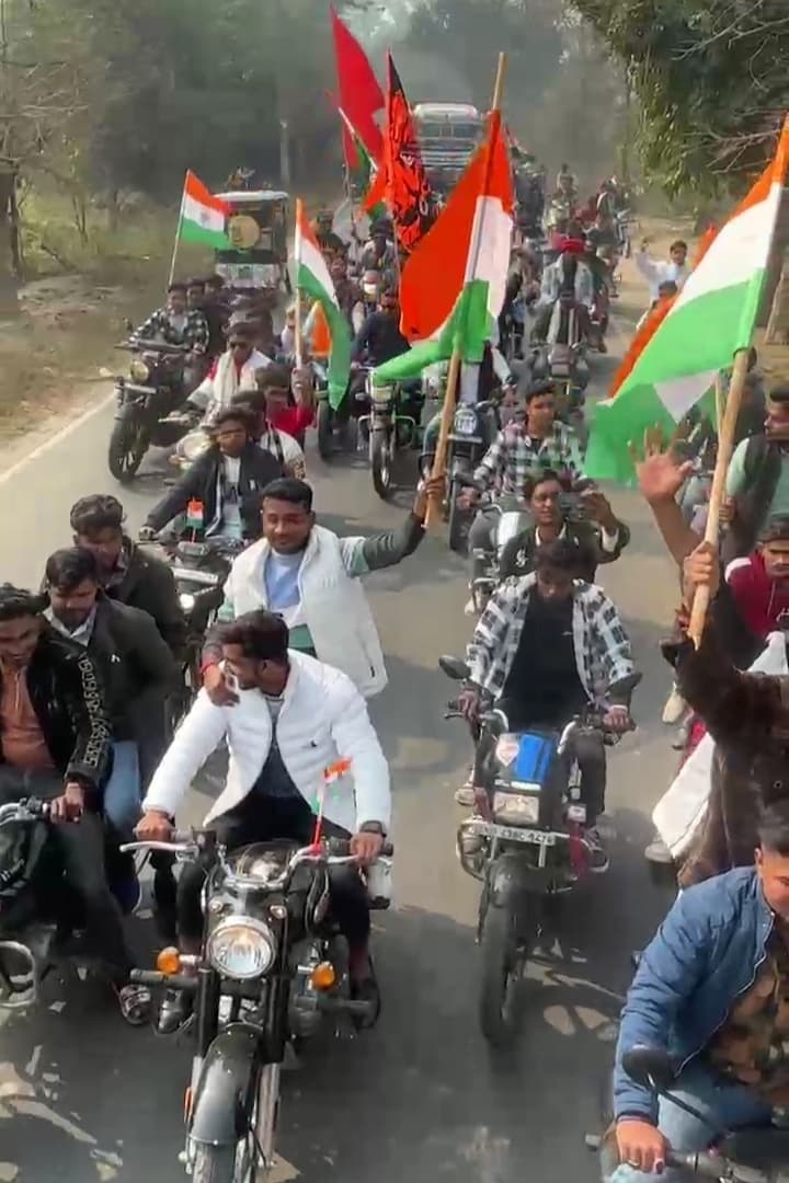 बस्ती। राष्ट्रीय पर्व गणतंत्र दिवस के अवसर पर समाज सेवी करन पाठक के नेतृत्व में तिरंगा यात्रा निकाली गयी यह तिरंगा यात्रा गाजे – बाजे व भारत माता के जयकारों के साथ सिकंदरपुर, हैदराबाद , रिधौरा से होकर मखौड़ा पहुंची जहां से सिकंदरपुर वापस पहुंच कर तिरंगा यात्रा का समापन हुआ ! इस तिरंगा यात्रा में सैकड़ों की संख्या में युवा लोगों ने बढ़ चढ़ कर हिस्सा लिया ! हमारे संवाददाता माधव प्रसाद ने इस तिरंगा यात्रा के आयोजक करन पाठक से बात की उन्होंने बताया की तिरंगा यात्रा निकालने में विनम्र निषाद , संदीप ,ऋषभ ,राणा प्रतात सिंह , मोनू मिश्रा, प्रिंस ,विकास ,आदिल ,अमन आदि युवाओ ने तिरंगा यात्रा में अपना योग दान दिया ! इस तिरंगा यात्रा का मकसद लोगों के अंदर तिरंगे के प्रति सम्मान देशभक्ति और संविधान के प्रति चेतना जागृत करना है।