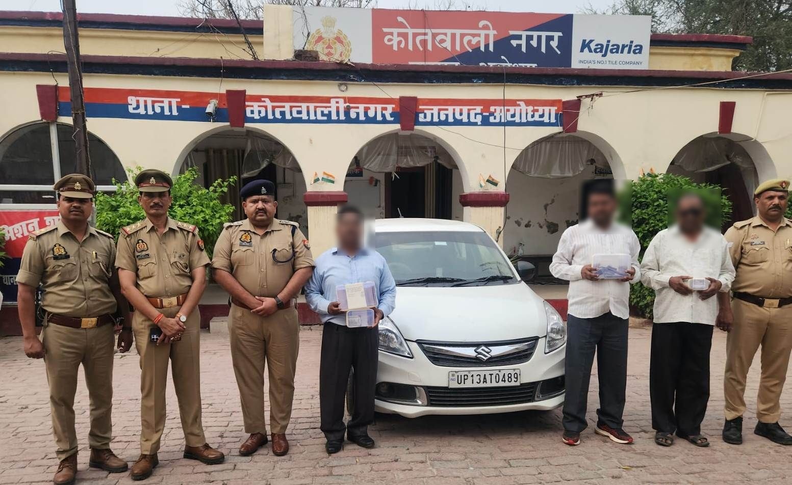 अयोध्या।शुक्रवार को कोतवाली नगर पुलिस में शहर के विभिन्न जगह पर भोले भाले लोगों से टप्पेबाजों करने वाले गिरोह मे शामिल अंतर्जनपदीय तीन अभियुक्तों को गिरफ्तार किया।पुलिस ने इनके पास से घटना में प्रयुक्त वाहन स्वीप्ट डिजायर कार,अवैध तमंचा एवं टप्पेबाजी के 6200 रुपये बरामद किये।इस संबंध में सीओ सिटी श्रीयश त्रिपाठी ने बताया कि टप्पेबाजों गिरोह मे शामिल इन अंतर्जनपदीय अभियुक्तों की गिरफ्तारी के लिए प्रभारी निरीक्षक कोतवाली नगर अश्वनी कुमार पांडे के नेतृत्व में एक टीम का गठन किया गया था।जिसमें उनके अलावा चौकी प्रभारी सिविल लाइन अमित कुमार चौकी प्रभारी रामनगर धर्मेंद्र सिंह शामिल रहे। प्रभारी निरीक्षक कोतवाली नगर अश्वनी पांडे व उनकी टीम में शामिल अन्य पुलिस कर्मियों ने इन अभियुक्तों को कोतवाली नगर क्षेत्र के भाजपा कार्यालय तिराहे से गिरफ्तार किया।गिरफ्तार किए गए अभियुक्तों की पहचान कमलेश कुमार यादव पुत्र स्व0 राम आधार यादव निवासी ग्राम खमपुर मौजा सिसवा थाना मऊ आइमा जनपद प्रयागराज,दीपक सिन्हा पुत्र नर्वदेश्वर प्रसाद सिन्हा (एन0पी0 सिन्हा)निवासी ग्राम गाड़ीवान टोला खुल्दाबाद थाना खुल्दाबाद जनपद प्रयागराज व राकेश पुत्र रामचरण निवासी ग्राम पूरे पितई करनपुर थाना नगर कोतवाली जनपद प्रतापगढ़ के रूप में हुई। बताया कि पुलिस ने इनके पास से घटना में प्रयुक्त कार,अवैध तमंचा,रूपये 6200 नगद बरामद किया।
