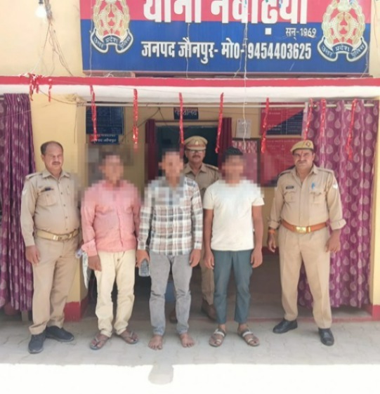 वरिष्ठ पुलिस अधीक्षक जौनपुर, कुंवर अनुपम सिंह द्वारा अपराध एवं अपराधियों के विरुद्ध चलाये जा रहे अभियान के क्रम मे श्रीमान् अपर पुलिस अधीक्षक ग्रामीण के दिशा-निर्देशन एवं श्रीमान् क्षेत्राधिकारी मडियाहूँ के निकट पर्यवेक्षण तथा थानाध्यक्ष नेवढ़िया के कुशल नेतृत्व में थाना नेवढ़िया पुलिस टीम द्वारा थाना स्थानीय पर पंजीकृत मु0अ0सं0-66/26 धारा- 85, 80(2) बीएनएस 3/4 डीपी एक्ट में वांछित अभियुक्तगण को 1.अजय पटेल पुत्र लालचन्द पटेल 2.लालचन्द पटेल पुत्र स्व0 वंशीधर पटेल 3.मोहित पटेल पुत्र लालचन्द पटेल निवासी गण ग्राम चित्तापुर धनेथू थाना नेवढ़िया जनपद जौनपुर को मुखबीर की सूचना पर सिहोरीवीर पुलिया के पास से गिरफ्तार किया गया तथा आवश्यक विधिक कार्यवाही की जा रही है।