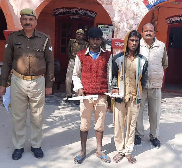 श्री अजय कुमार साहनी, वरिष्ठ पुलिस अधीक्षक जौनपुर, द्वारा आगामी विधानसभा चुनाव 2022 के दृष्टिगत अपराध एवं अपराधियों के विरुद्ध चलाये गये सघन अभियान के क्रम में अपर पुलिस अधीक्षक (ग्रामीण) के कुशल निर्देशन तथा क्षेत्राधिकारी मछलीशहर के पर्यवेक्षण तथा प्रभारी निरीक्षक मछलीशहर श्री अवनीश कुमार राय कुशल नेतृत्व में व0उ0नि0 श्री रामप्रवेश कुशवाहा, उ0नि0 श्री धनन्जय कुमार राय मय हमराही कर्मचारीगण के रात्रिगश्त देखभाल क्षेत्र व चेकिंग संदिग्ध वाहनों / व्यक्तियों के दौरान मिर्जापुर जलालाबाद मार्ग पर दो व्यक्ति वाहन धुलाई सेन्टर के पीछे पुलिस वाहन देखकर दुबकते हुऐ दिखाई दिऐ कि संदेह होने पर टार्चों की रोशनी से आस-पास तलाशी करने पर दो व्यक्ति भागने का प्रयास किये जिन्हें 10-15 कदम जाते जाते पकड़ लिया गया । पकड़े गये व्यक्तियो में से एक नें अपना नाम अवनीश कुमार बिन्द उर्फ पिन्टू उम्र करीब 22 वर्ष पुत्र विनय कुमार बिन्द निवासी कोढ़ा थाना मछलीशर जौनपुर बताया, जिसकी जमा तलाशी से उसके कब्जे से एक अदद तमन्चा 315 बोर व एक अदद कारतूस 315 बोर बरामद हुआ । दुसरे व्यक्ति ने अपना नाम सुजीत विश्वकर्मा उर्फ ढुन्डू उम्र करीब 19 वर्ष पुत्र दीनानाथ विश्वकर्मा थाना मछलीशहर जनपद जौनपुर बताया जिसकी जामा तलाशी से एक अदद चाकू अवैध बरामद हुआ । कड़ाई से पूछताछ करने पर मोनोब्लाक पम्पिंग सेट दो हार्सपावर चोरी करने की बात स्वीकार किये तथा धुलाई सेन्ट्रर के पीछे छुपा कर रखे गये उपरोक्त मोटर पम्प को बरामद करायें । चोरी की मोटर पम्प बरामदगी के सम्बन्ध में थाना मछलीशहर पर मु0अ0सं0 60/22 धारा 411, 414 IPC बनाम अवनीश कुमार बिन्द उर्फ पिन्टू व सुजीत विश्वकर्मा पंजीकृत किया गया तथा अवैध तमन्चा बरामदगी के सम्बन्ध में मु0अ0सं0 61/22 धारा 3/25 शस्त्र अधि0 बनाम अवनीश कु0 बिन्द तथा अवैध चाकू के बरामदगी के सम्बन्ध में मु0अ0सं0 62/22 धारा 4/25 शस्त्र अधि0 बनाम सुजीत विश्वकर्मा पंजीकृत कर बाद आवश्यक कार्यवाही अभियुक्त उपरोक्त को मा0 न्याया0 के समक्ष पेश किया जा रहा है ।