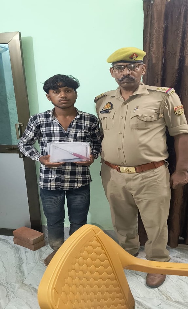 जौनपुर: पुलिस अधीक्षक द्वारा अपराध की रोकथाम एवं अपराधियों की गिरफ्तारी हेतु चलाये जा रहे चेंकिग अभियान के दौरान थाना महराजगंज पुलिस टीम द्वारा थानाध्यक्ष महराजगंज के नेतृत्व में दिनांक 16/17.07.25 की रात्रि में ABS चौकी के पास से मोटरसाइकिल सवार युवक को चेकिंग किया गया, युवक के पास से एक अवैध चाकू बरामद हुआ, जिससे अपराध करने के फिराक मे था, गिरफ्तारी व बरामदगी के आधार पर मु0अ0सं0- 123/25 धारा 4/25 आर्म्स एक्ट कर आवश्यक विधिक कार्यवाही की जा रही है ।