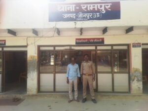 श्री अजय साहनी , वरिष्ठ पुलिस अधीक्षक जौनपुर के अपराध एवं अपराधियों पर नियन्त्रण हेतु चलाए जा रहे अभियान के क्रम में अपर पुलिस अधीक्षक ग्रामीण के निर्देशन एवं क्षेत्राधिकारी मड़ियाहूँ के पर्यवेक्षण तथा थानाध्यक्ष रामपुर ओमनारायण सिंह के कुशल नेतृत्व में महिला सशक्तिकरण/ एण्टी रोमियों अभियान के दृष्टिगत संदिग्ध व्यक्तियों की चेकिंग के दौरान धनुहाँ तिराहा रामपुर में एक संदिग्ध व्यक्ति जो आने जाने वाली महिलाओं पर फब्तिया कस रहा था को आवश्यक पुलिस बल का प्रयोग करते हुये पकड़ लिया गया । पकड़े गये अभियुक्त अभियुक्त संतोष कुमार सेठ पुत्र रामजी सेठ निवासी आशानन्दपुर थाना रामपुर जनपद जौनपुर को हिरासत में लेकर आवश्यक विधिक कार्यवाही करते हुये अभियुक्त के विरूद्ध मु0अ0सं0 43/22 धारा 294 भादवि पंजीकृत किया गया ।