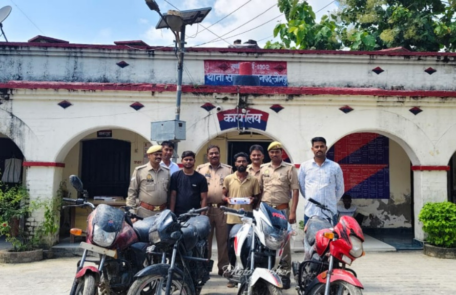 थाना सरपतहाँ पुलिस टीम द्वारा 02 अन्तर्जनपदीय शातिर वाहन चोरों को किया गया गिरफ्तार, कब्जे से चोरी की 04 मोटरसाइकिल, 01 तमंचा व 01 कारतूस बरामद-