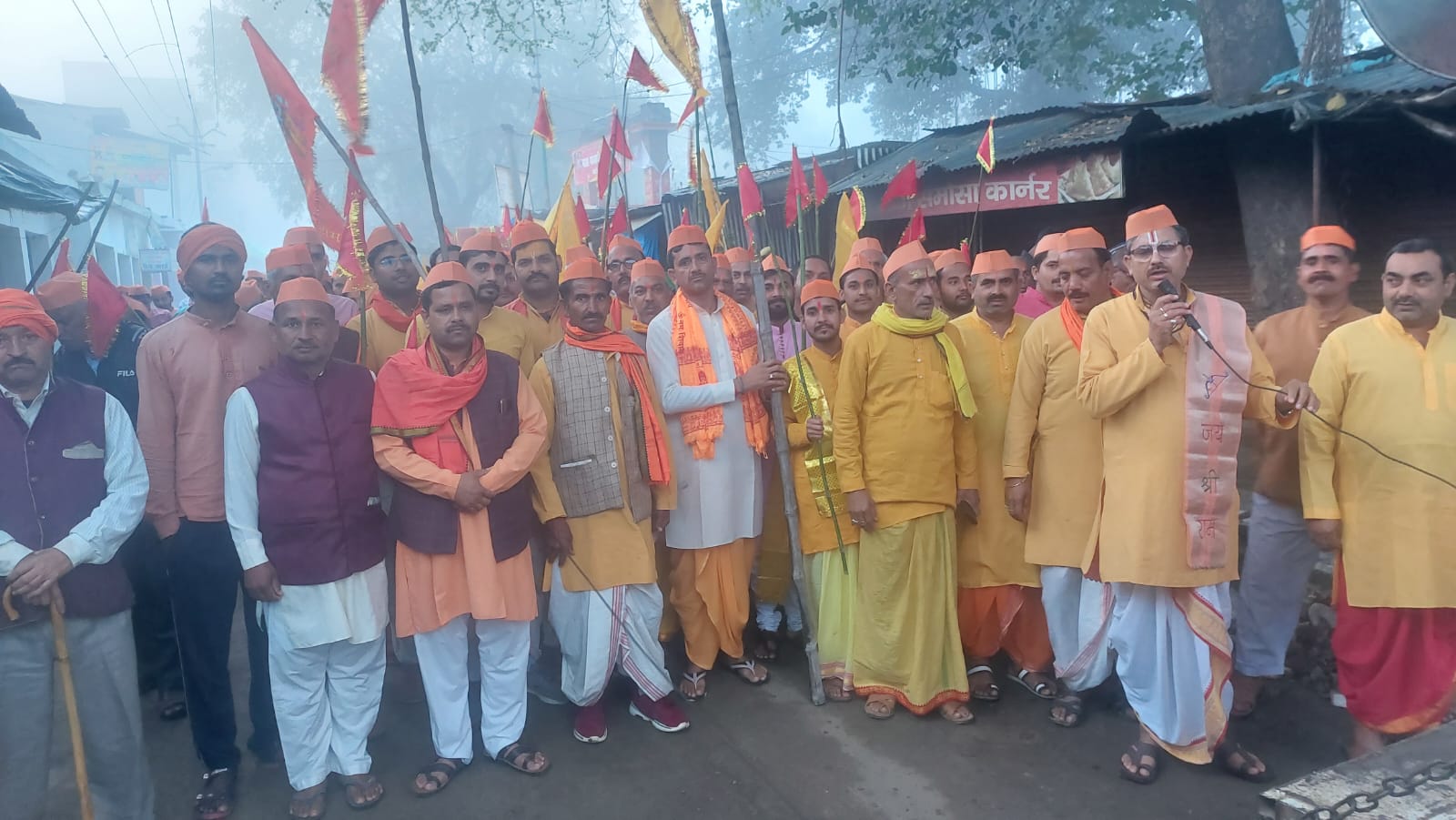 नगर व क्षेत्र के धार्मिक व सामाजिक कार्यों में निरंतर सेवारत शारद पंडित प्रशान्त कुमार”पी.के.” ने बताया कि इस प्रभातफेरी में सनातनियों के एक विशाल जनसमूह को जोड़ने का कार्य किया गया। अपने सनातन धर्म की पृष्ठभूमि, इतिहास व अपने कर्तव्यों आदि के प्रति जयनाद, भजन आदि से जनजागरण किया। इस विषय में सभी प्रक्रियाओं एवं वांछनीय सभी कानूनी नियमों का अनुसरण किया गया। मार्ग में नागरिकों द्वारा द्वारा पुष्पवर्षा कर स्वागत सम्मान किया गया।