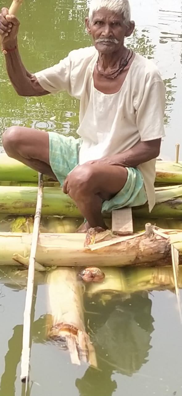 नाव की व्यवस्था न होने पर ,केले के तने का बना लिया नाव