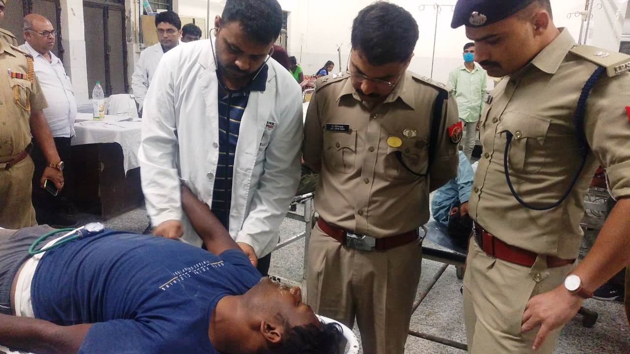 प्रभारी निरीक्षक कैण्ट के बुलेट प्रुफ जैकेट पर गोली लगी एवं प्रभारी निरीक्षक कैण्ट के सरकारी वाहन के सामने शीशे पर गोली लगना व 03 आरक्षी घायल