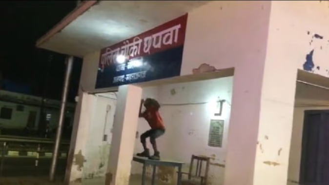 पुलिस बूथ में युवक मेज पर करता रहा डांस, सोशल मीडिया पर वीडियो वायरल