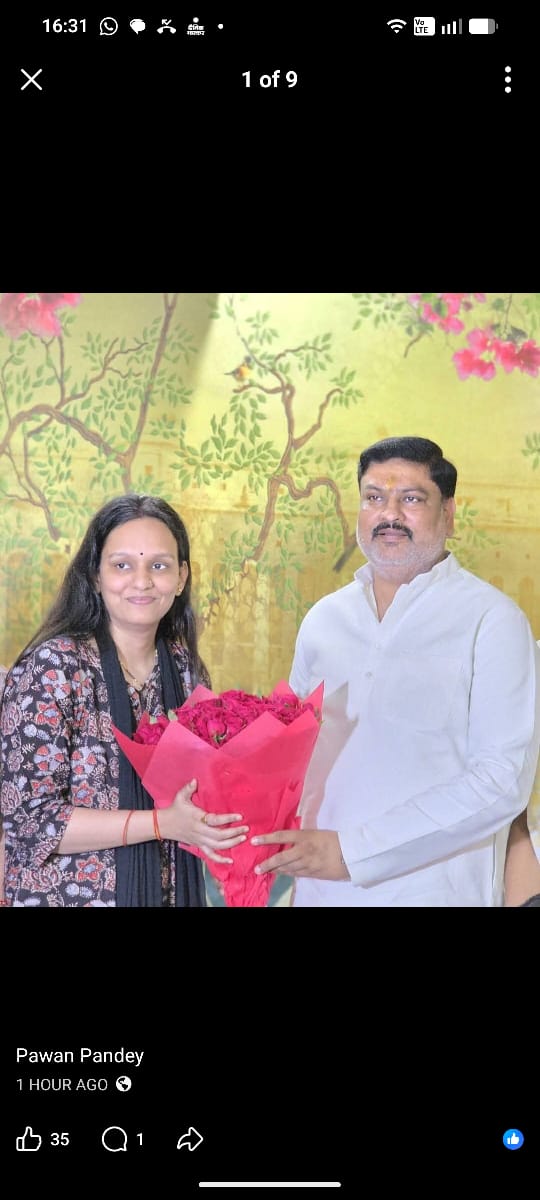 पूर्व मंत्री तेजनारायण पांडे ने पीसीएस मे चौथी रैंक लाकर डिप्टी कलेक्टर पद पर चयनित अनामिका मिश्रा को दिया बधाई।
