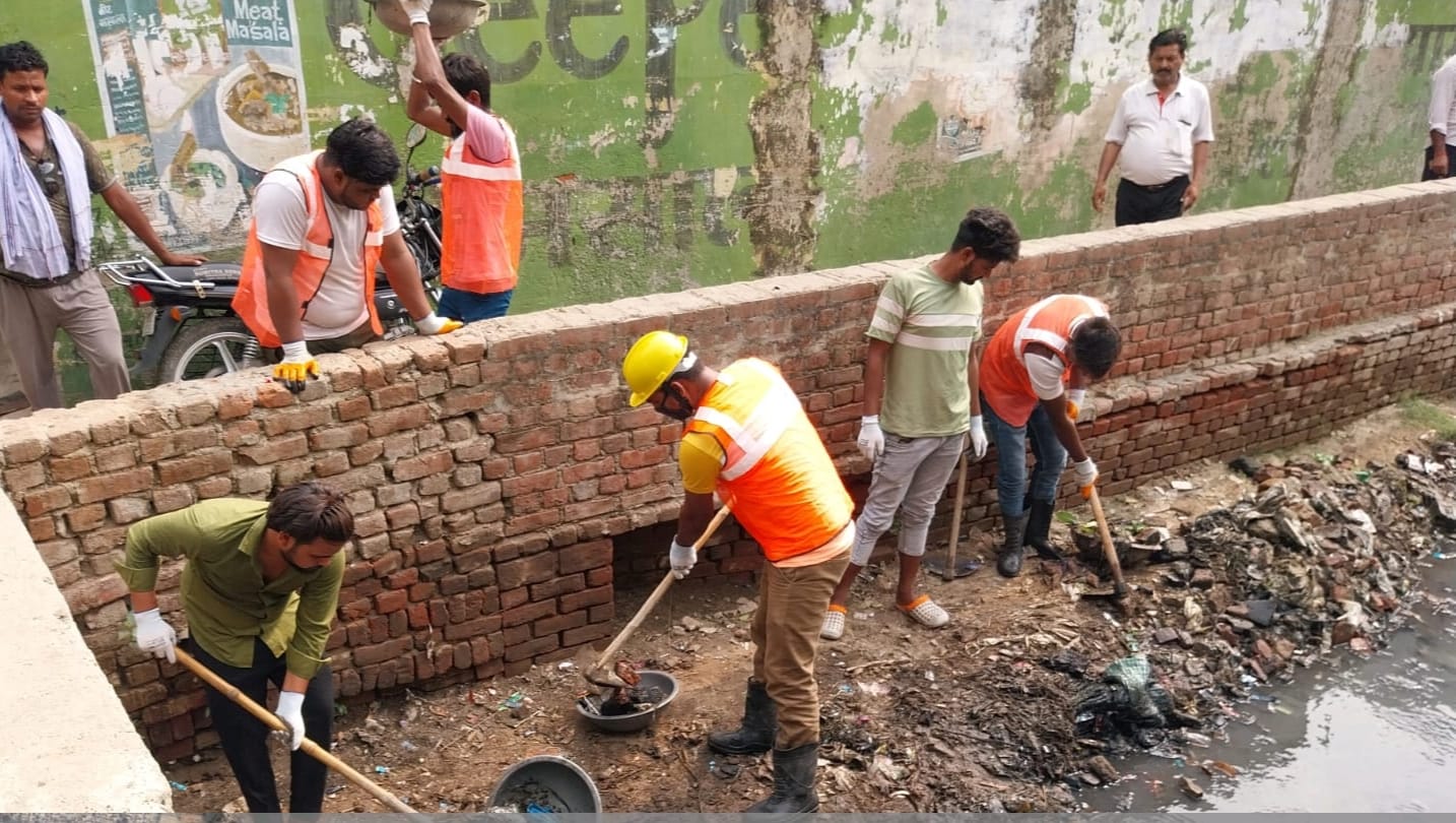 बरसात से पहले नालों की सफाई में जुटे दर्जनों सफाईकर्मी