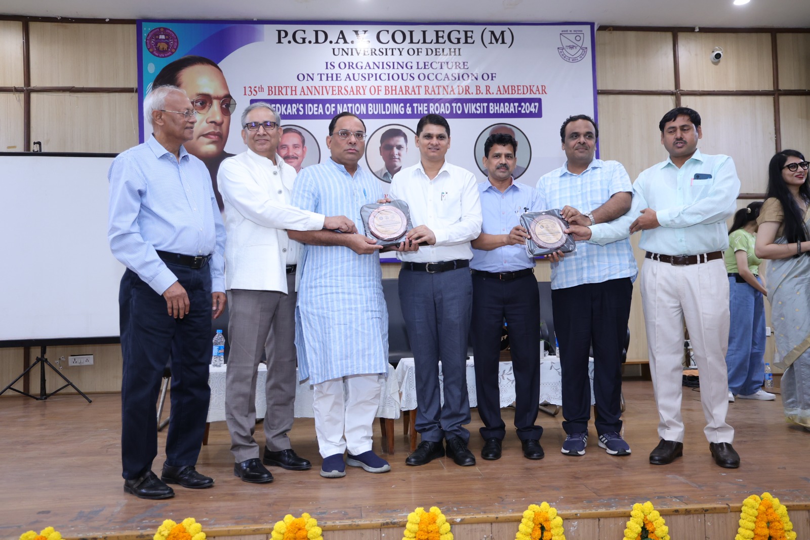 भारत रत्न डॉ.भीमराव अंबेडकर की 135वीं जयंती के शुभ अवसर पर दिल्ली विश्वविद्यालय के पी.जी.डी.ए.वी. कॉलेज प्रातः द्वारा एक बाबा साहब के साहित्य की प्रदर्शनी, निबंध लेखन प्रतियोगिता एवं “राष्ट्र निर्माण में अंबेडकर के विचार और विकसित भारत 2047 का मार्ग”विषय पर प्रत्येक वर्ष की भांति “बाबा साहब भीमराव अंबेडकर स्मृति व्याख्यानमाला” के अंतर्गत व्याख्यान का आयोजन किया गया।कार्यक्रम की शुरुआत दीप प्रज्ज्वलन एवं बाबा साहब की चित्र पर माल्यार्पण के साथ गरिमामय वातावरण में हुई।