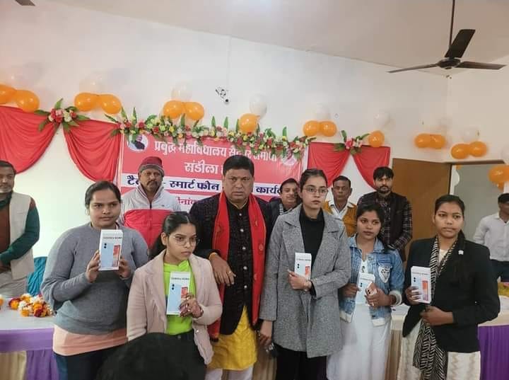 लखनऊ। जनपद हरदोई के सैदपुर संडीला स्थित प्रबुद्ध महाविद्यालय में स्मार्ट फोन ‘ टेबलेट’ वितरण कार्यक्रम में मुख्य अतिथि के रूप में भाजपा अवध प्रांत उपाध्यक्ष राजीव मिश्रा ने उपस्थित होकर मेधावी छात्र / छात्राओं को स्मार्ट फोन वितरित कर उत्साहवर्धन किया एवं उपस्थित विद्यार्थियों से संवाद किया ।