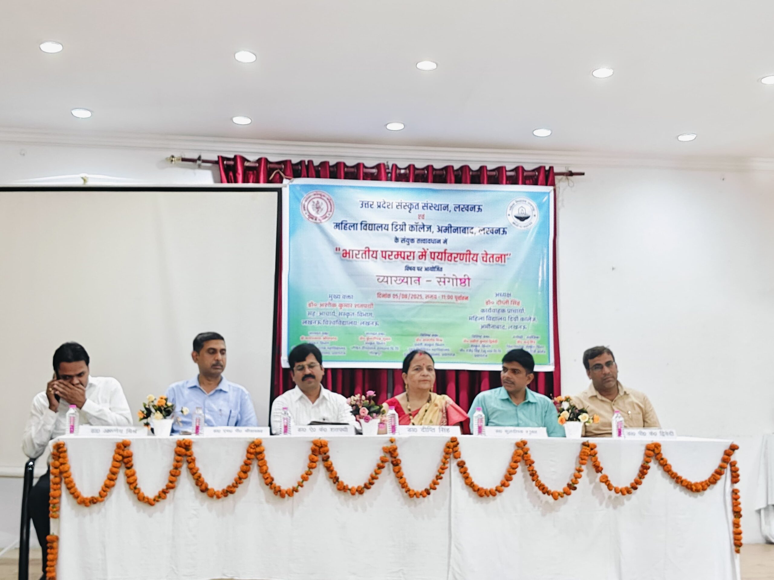 लखनऊ।महिला महाविद्यालय डिग्री कॉलेज, अमीनाबाद एवं उत्तर प्रदेश संस्कृत संस्थान के संयुक्त तत्वावधान में “भारतीय ज्ञान परंपरा में पर्यावरणीय चेतना” विषय पर एकदिवसीय व्याख्यान संगोष्ठी का आयोजन किया गया।