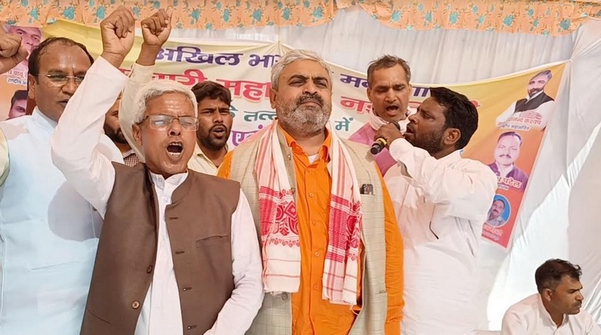 राष्ट्रीय अध्यक्ष माननीय बाबू हेमंत राव जी ने अपने संबोधन में कहा कि दिनांक 3 अप्रैल 2016 को झूलेलाल मैदान में माननीय सांसद कौशल किशोर जी एवं माननीय गृह मंत्री राजनाथ सिंह जी ने उत्तर प्रदेश के समस्त संविदा कर्मियों के साथ “अधिकार दिलाओ महारैली” की थी जिसमें हम सभी मनरेगा कर्मियों को भी बुलाया गया था और उसमें हम सभी से नियमित करने का वादा किया गया था और माननीय सांसद कौशल किशोर जी के द्वारा लिखित वादा पत्र दिया गया था कि हमारी अर्थात भारतीय जनता पार्टी की सरकार बनने पर हम सभी मनरेगा कर्मियों को नियमित करने का काम करेंगे लेकिन 6 वर्ष बीत जाने के बाद भी आज तक कोई सुनवाई नहीं हुई। जिसको लेकर हम लोग आज यहां एकत्र हुए हैं। हम सरकार से मांग करते हैं  कि हमारी  मांगों पर शीघ्र कार्रवाई की जाए।