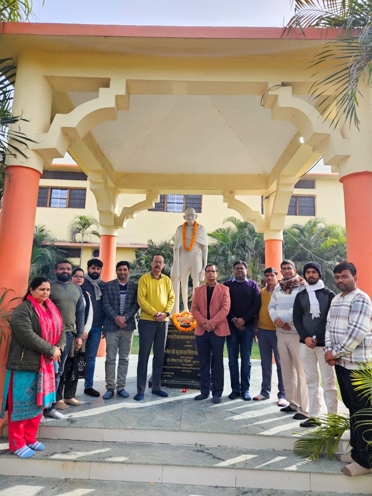 जौनपुर,30 जनवरी। यूपी के जौनपुर स्थित वीर बहादुर सिंह पूर्वांचल विश्वविद्यालय के राष्ट्रीय सेवा योजना (एनएसएस) द्वारा गांधी वाटिका में राष्ट्रपिता महात्मा गांधी की पुण्यतिथि के अवसर पर शुक्रवार को श्रद्धांजलि कार्यक्रम का आयोजन किया गया। कार्यक्रम में विश्वविद्यालय के शिक्षकों एवं एनएसएस से जुड़े पदाधिकारियों ने महात्मा गांधी की प्रतिमा पर पुष्प अर्पित कर उन्हें नमन किया।