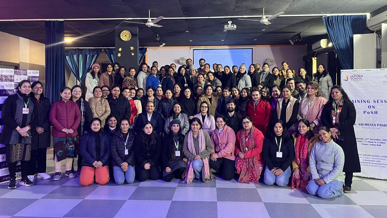 लखनऊ। सेठ एम. आर.जयपुरिया स्कूल गोयल कैम्पस ने अभिवृद्धि इनोवेशन कंसल्टेंटस प्राइवेट लिमिटेड से सहभागिता करते हुए डॉ. सौम्यता पाण्डे ( पॉश कंसल्टेंट एवं ट्रेनर) की अध्यक्षता में अपनी टीम श्री राजेश सिंह ( डायरेक्टर)और श्री अनुभव के साथ गोयल कैम्पस के सभागार में कार्यस्थल पर ” *महिलाओं का यौन उत्पीड़न ( रोकथाम, निषेध, निवारण) अधिनियम २०१३” कार्यशाला का आयोजन किया गया। कार्यशाला का आरंभ दीप प्रज्ज्वलन से किया गया। प्रधानाचार्या डॉ. श्रीमती रीना पाठक ने अतिथियों का स्वागत प्रतीक चिह्न,शॉल एवं पौधे भेंट करके किया। कार्यशाला के आरंभ में शामिल हुए सभी अध्यापकों को संबोधित करते हुए डॉ सौम्यता ने बताया कि पॉश का कानून क्यों बनाया गया,इसकी आवश्यकता क्यों महसूस की गई ,अपने कार्यक्षेत्र में इसका कैसे उपयोग करके सुरक्षा प्राप्त की जा सकती है । डॉ. पाण्डेय ने भंवरी देवी का संघर्ष भी बताया। विशाखा गाइडलाइंस पर चर्चा करते हुए पॉश कानून की महत्ता बताई किअपने कार्यक्षेत्र में महिलाएं किस प्रकार मानसिक शारीरिक शोषण के खिलाफ आवाज उठा सकती है।इस प्रकार अन्य बहुत सी संभावनाओ से भी रूबरू कराया कि शैक्षणिक सामाजिक संस्थाएं किस प्रकार अपने कर्मचारियों को इस कानून से सुरक्षित कर सकती है। इस कार्यशाला में विद्यालय के एडमिन स्टाफ और चतुर्थ श्रेणी के कर्मचारी भी शामिल हुए। प्रधानाचार्या डॉ. पाठक ने सभी का धन्यवाद करते हुए कार्यशाला का समापन किया।