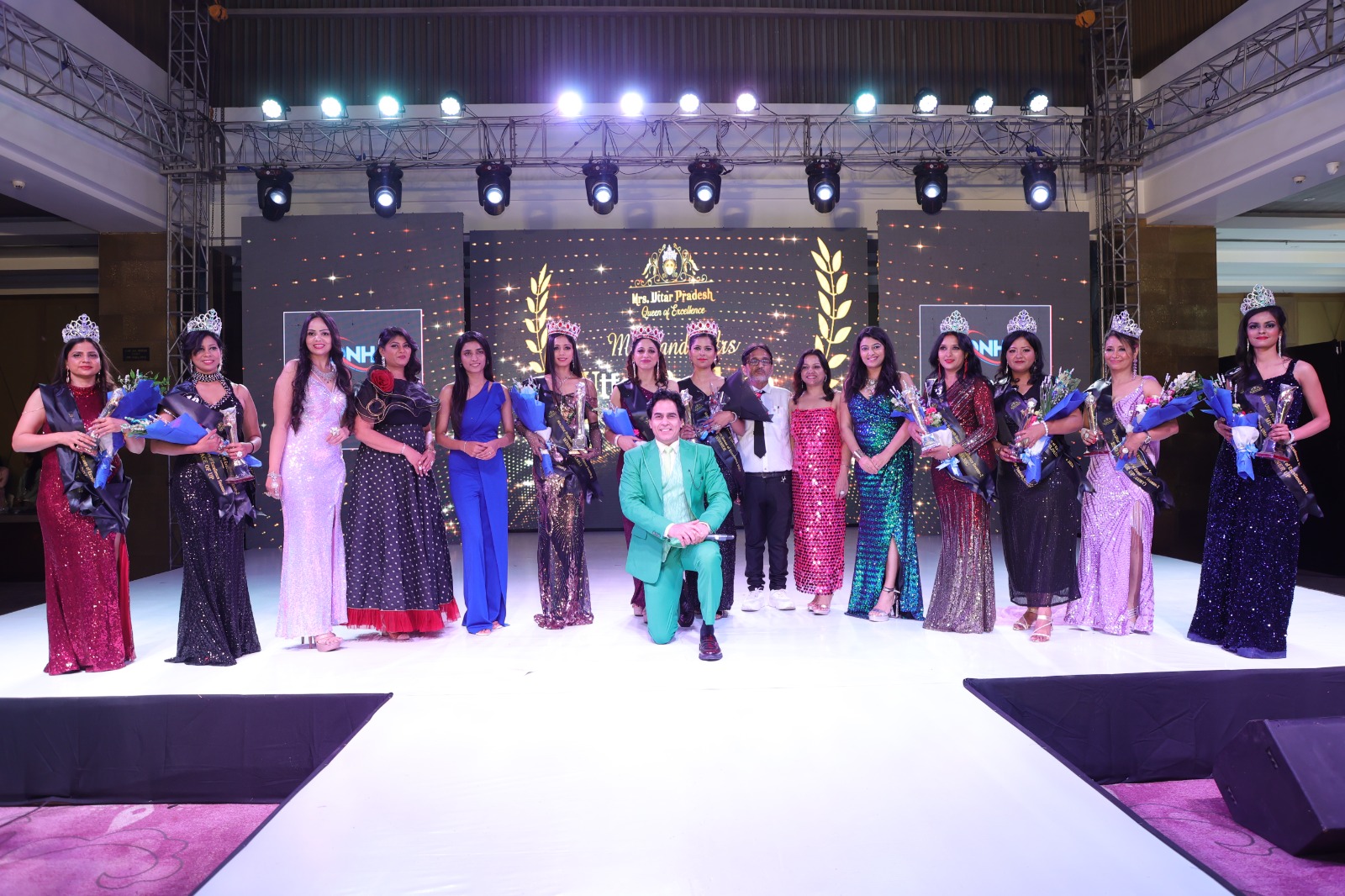 मिस प्रियंका बानी उत्तर प्रदेश, क्वीन ऑफ़ एक्सेलेंस, मिसिस रागिनी (पर्ल श्रेणी), और डॉ. मेघना गुप्ता चौधरी (रूबी श्रेणी) को पहनाया गया मिसेज यूपी क्वीन ऑफ़ एक्सीलेंस का ताज