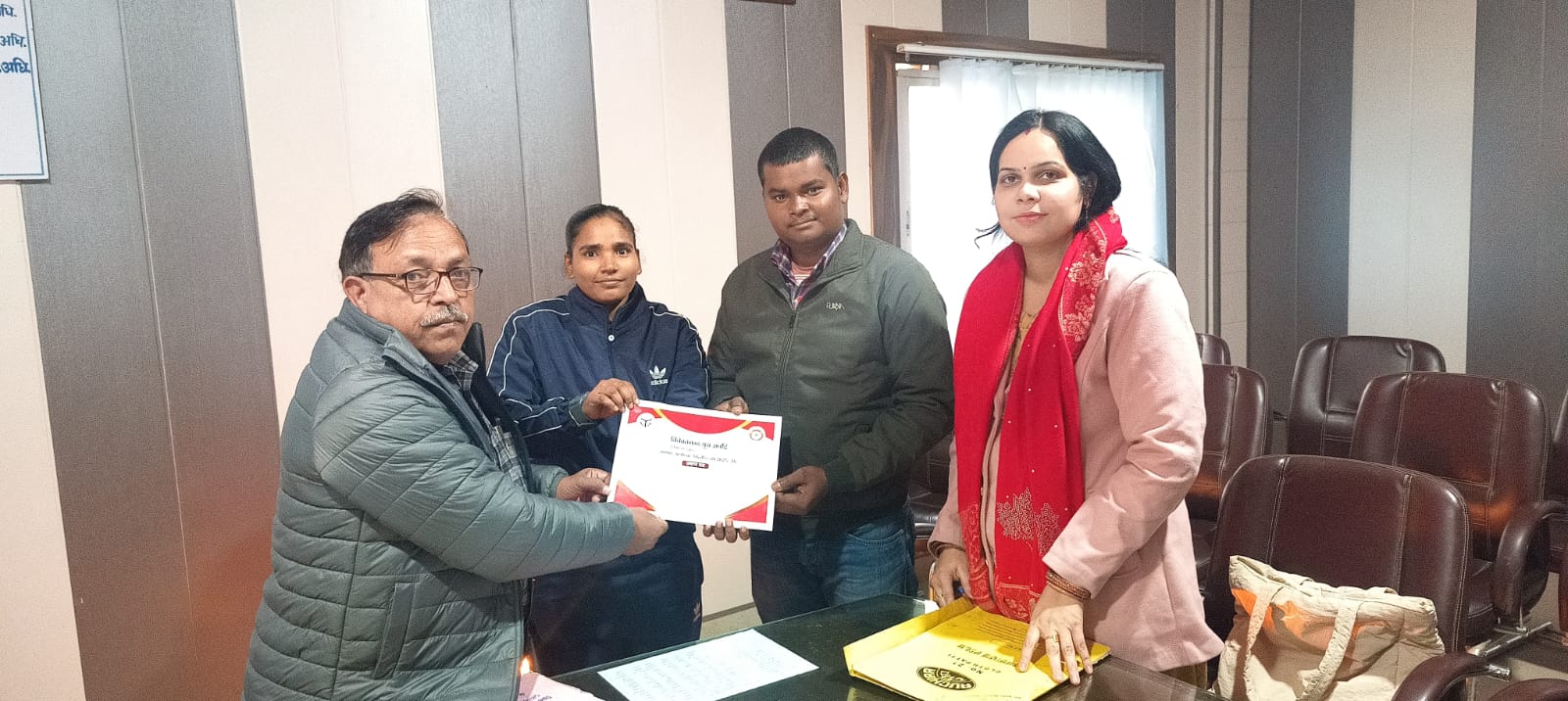 युवा कल्याण एवं प्रांतीय रक्षक दल विभाग द्वारा वितरित किया गया प्रमाण पत्र