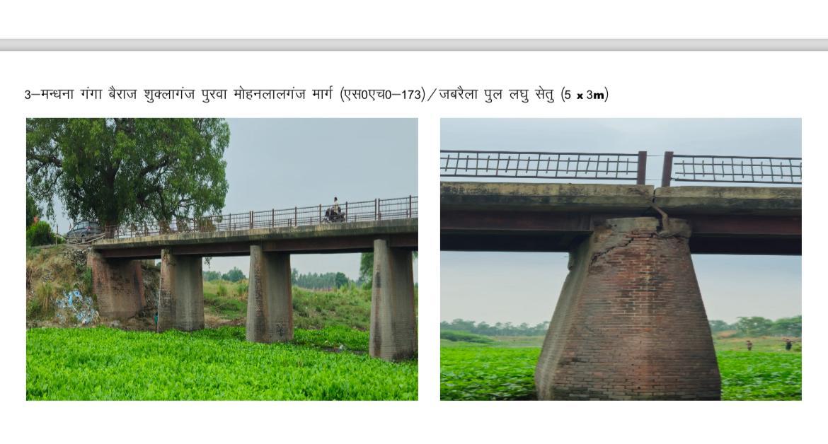 लखनऊ। लखनऊ-उन्नाव सीमा पर सई नदी पर पूर्व निर्मित सेतु के क्षतिग्रस्त होने के कारण भारी वाहनों का डायवर्जन कर दिया गया है। अधिशासी अभियन्ता (निर्माण खण्ड-2, लो०नि०वि० लखनऊ) श्री अनूप मिश्रा ने यह जानकारी देते हुए बताया कि मन्धना गंगा बैराज – शुक्लागंज पुरवा मौराँवा मोहनलालगंज मार्ग (राज्य मार्ग सं0-173) पर लखनऊ-उन्नाव सीमा पर सई नदी पर स्थित सेतु काफी पुराना होने के कारण जीर्ण-शीर्ण अवस्था में आ गया है। यह सेतु दो एवेटमेन्ट एवं चार पियर्स के साथ 5X8.50 Mtr. स्पान में निर्मित है, जिसमें दो पियर्स में दरारें आ गयी है। इस सेतु से भारी वाहनों का आवागमन हो रहा है यह सेतु भारी वाहनों के आवागमन हेतु सुरक्षित नहीं है। जिससे किसी भी समय अप्रिय घटना घटित होने की सम्भावना है।