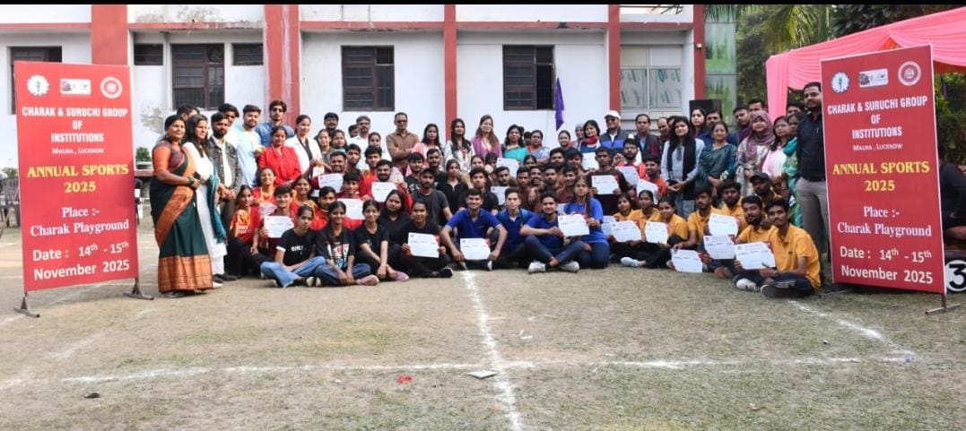 लखनऊ, 15 नवम्बर — चरक एंड सुरुचि ग्रुप ऑफ इंस्टीट्यूशंस में वार्षिक खेलकूद समारोह 2025-26 दो दिवसीय कार्यक्रम के सफल समापन के साथ सम्पन्न हुआ। 14 और 15 नवम्बर को आयोजित इस खेल महोत्सव में नर्सिंग, फार्मेसी, पैरामेडिकल और एजुकेशन विभाग की टीमों ने विभिन्न खेलों में सक्रिय भागीदारी की।