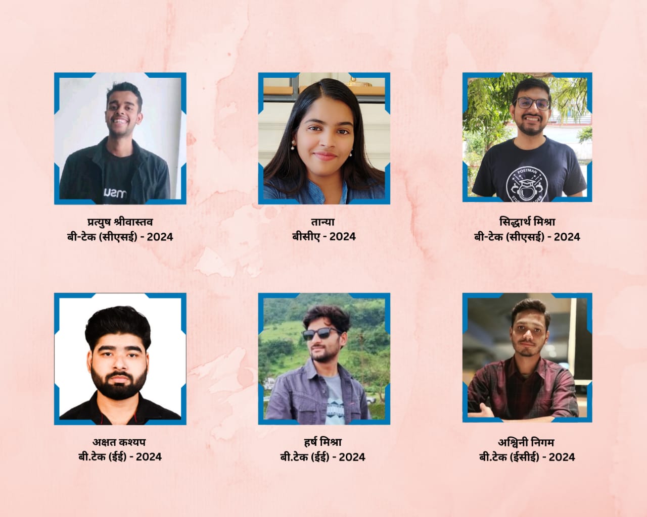 प्लेसमेंट इंचार्ज डॉ. हिमांशु पांडेय ने बताया कि गाबा टेलीसाइकेत्री कंपनी मे बीसीए की छात्रा तान्या का प्लेसमेंट सिक्योरिटी एंड मार्केटिंग स्पेशलिस्ट के पद पर 7.56 लाख प्रतिवर्ष के पैकेज पर प्लेसमेंट हुआ। जापानी एमएनसी कंपनी, एनटीटी डेटा मे बीटेक के छात्र प्रत्युश श्रीवास्तव का प्लेसमेंट आईटी डेवलपमेंट प्रोग्रामर के पद पर 5 लाख प्रतिवर्ष के पैकेज पर हुआ। साथ ही टेक बी.आर.जे कंपनी मे बीटेक के छात्र सिद्धार्थ मिश्रा का फ्रंट एन्ड डेवलपर के पद पर 4 लाख प्रतिवर्ष के पैकेज पर प्लेसमेंट हुआ। याज़ाकी इंडिया कंपनी मे बीटेक के तीन छात्रों अश्वनी निगम, हर्ष मिश्रा और अक्षत कश्यप का रिसर्च एंड डेवलपर के पद पर 4 लाख प्रतिवर्ष के पैकेज पर प्लेसमेंट हुआ।