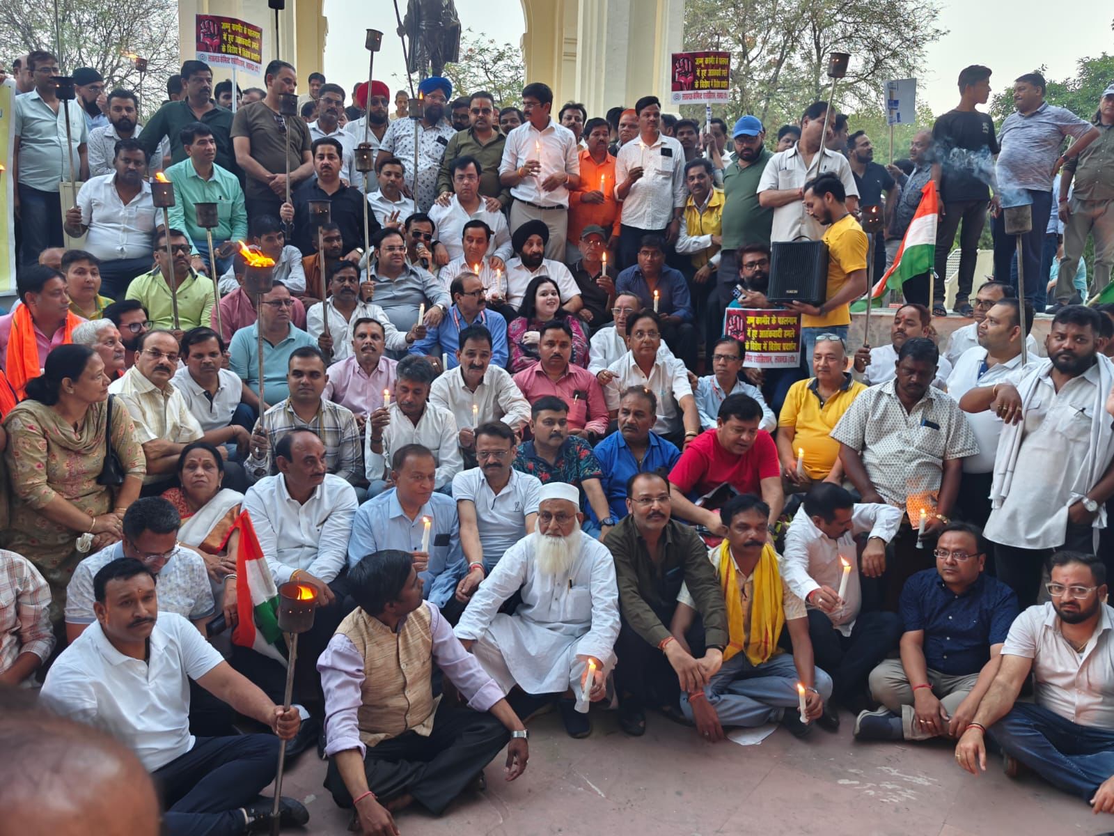 लखनऊ। नगर इकाई, यहियागंज बाजार का नेतृत्व अध्यक्ष अमरनाथ मिश्र,नाका बाजार का नेतृत्व पवन मनोचा, भूतनाथ बाजार का नेतृत्व देवेन्द्र गुप्ता, राजाजीपुरम बाजार का नेत्रत्व उमेश शर्मा, आलमबाग व्यापार मण्डल का नेतृत्व विजय सन्मुख, बुद्धेश्वर से अजय गुप्ता, हंसखेड़ा बाजार का नेतृत्व लल्लन यादव, नटखेड़ा रोड व्यापार मण्डल का नेतृत्व मनीश अरोड़ा,कैन्ट परिक्षेत्र व्यापार का नेतृत्व कुश अरोड़ा, अयोध्या रोड व्यापार मण्डल का नेतृत्व सुहैल हैदर अल्वी, डालीगंज मनीश गुप्ता, मुन्सी पुलिया बाजार का नेतृत्व मनीष वर्मा, अमीनाबद विनोद अग्रवाल अशोक मोतियानी संजय कपूर के नेत्रत्व दवा मार्केट हरीश साह, लाटूस रोड व्यापार मण्डल के सतीश अग्रवाल, हीवेट रोड से अतुल त्रिपाठी, लालबाग से संजीव अग्रवाल, जनपथ रमेश मिश्रा, हजरतगंज से विनोद पंजावी, श्रीराम टावर से नीरज जौहर सदर बाजार से सतवीर सिंह राजू गोमतीनगर से राजेश सोनी चिनहट से शशी शुक्ला के नेत्रत्व में बाजारों से सैकड़ो संख्या में आए हुए व्यापारियों ने पहलगाम में हुए कायरतापूर्ण आतंकी हमले के विरोध में लखनऊ व्यापार मण्डल के चेयरमैन राजेन्द्र कुमार अग्रवाल अध्यक्ष अमरनाथ मिश्र के नेतृत्व में आज शाम 7 बजे गांधी प्रतिमा हजरतगंज जीपीओ पर मशाल जुलूस निकालकर हमले में मारे गये सैलानियों को श्रद्धांजलि देते हुए विरोध दर्ज कराया।